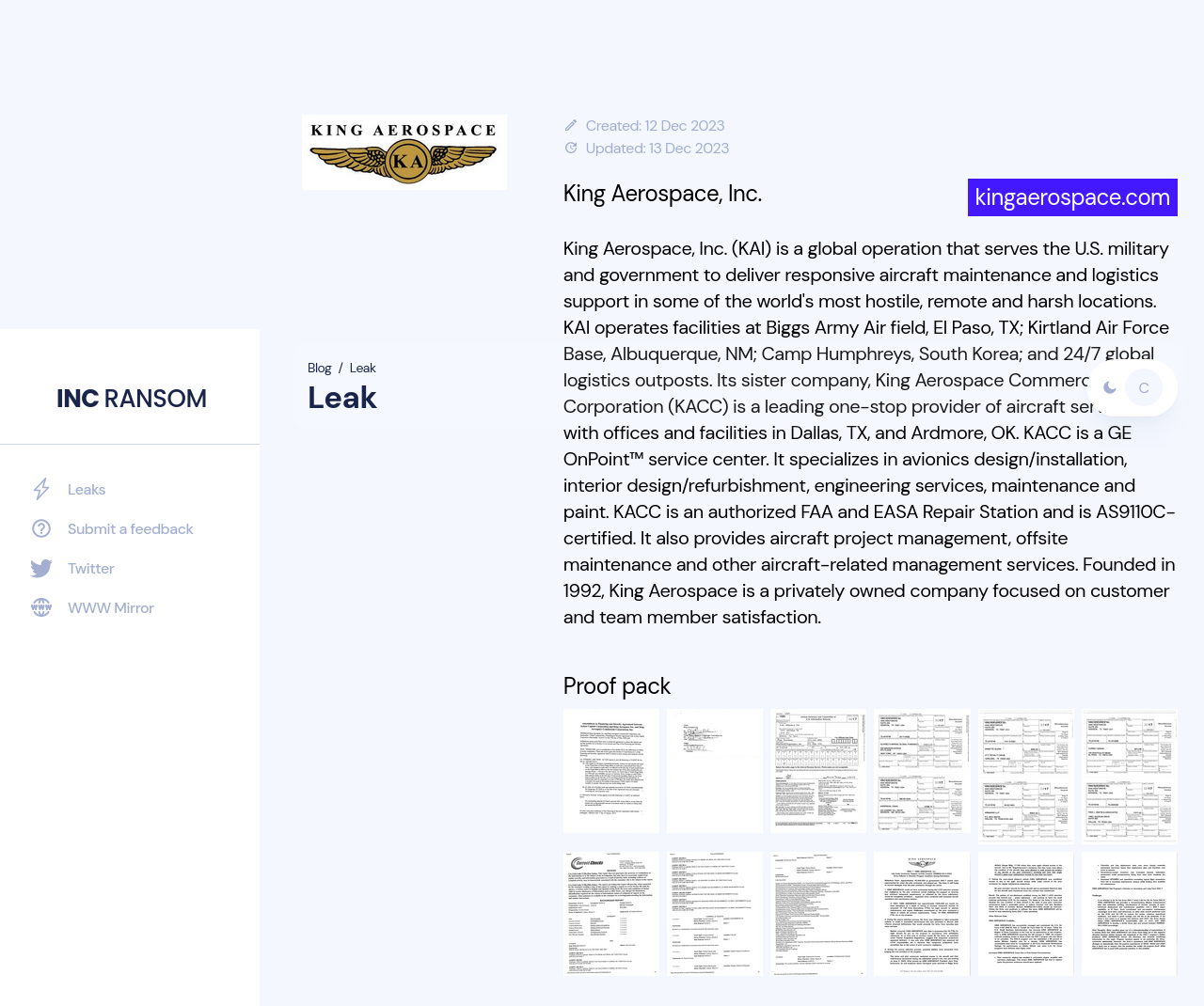 King Aerospace, Inc. (KAI) is a global operation that serves the U.S. military and government to deliver responsive aircraft maintenance and logistics support in some of the world's most hostile...