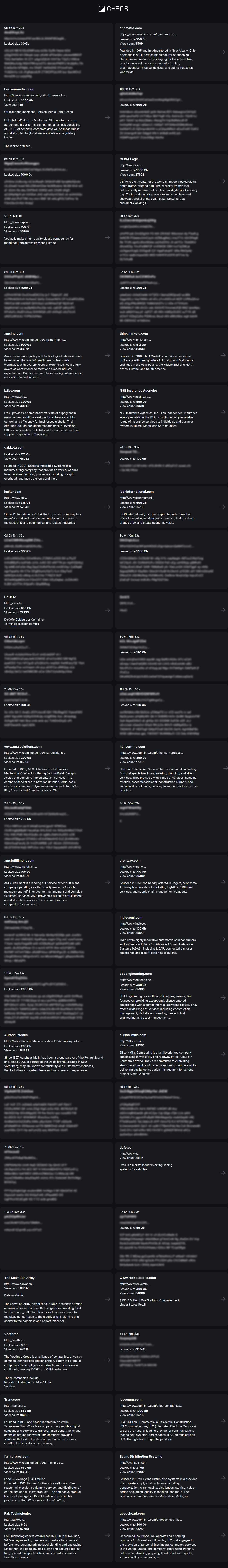 Chaos is a rapidly evolving Ransomware-as-a-Service (RaaS) group first observed in early 2025. It is considered distinct and unaffiliated with the Chaos Ransomware Builder that originated around 2021. Known for highly aggressive double-extortion operations, Chaos targets organizations across multiple platforms—Windows, ESXi, Linux, and NAS—with fast, configurable encryption mechanisms and optional partial-file targeting for stealth. Attackers gain access through vulnerabilities, phishing, or brokered credentials, then encrypt files while threatening to leak or destroy stolen data. Notable incidents include the breach of Optima Tax Relief, in which the group exfiltrated 69 GB of sensitive data before encrypting systems.