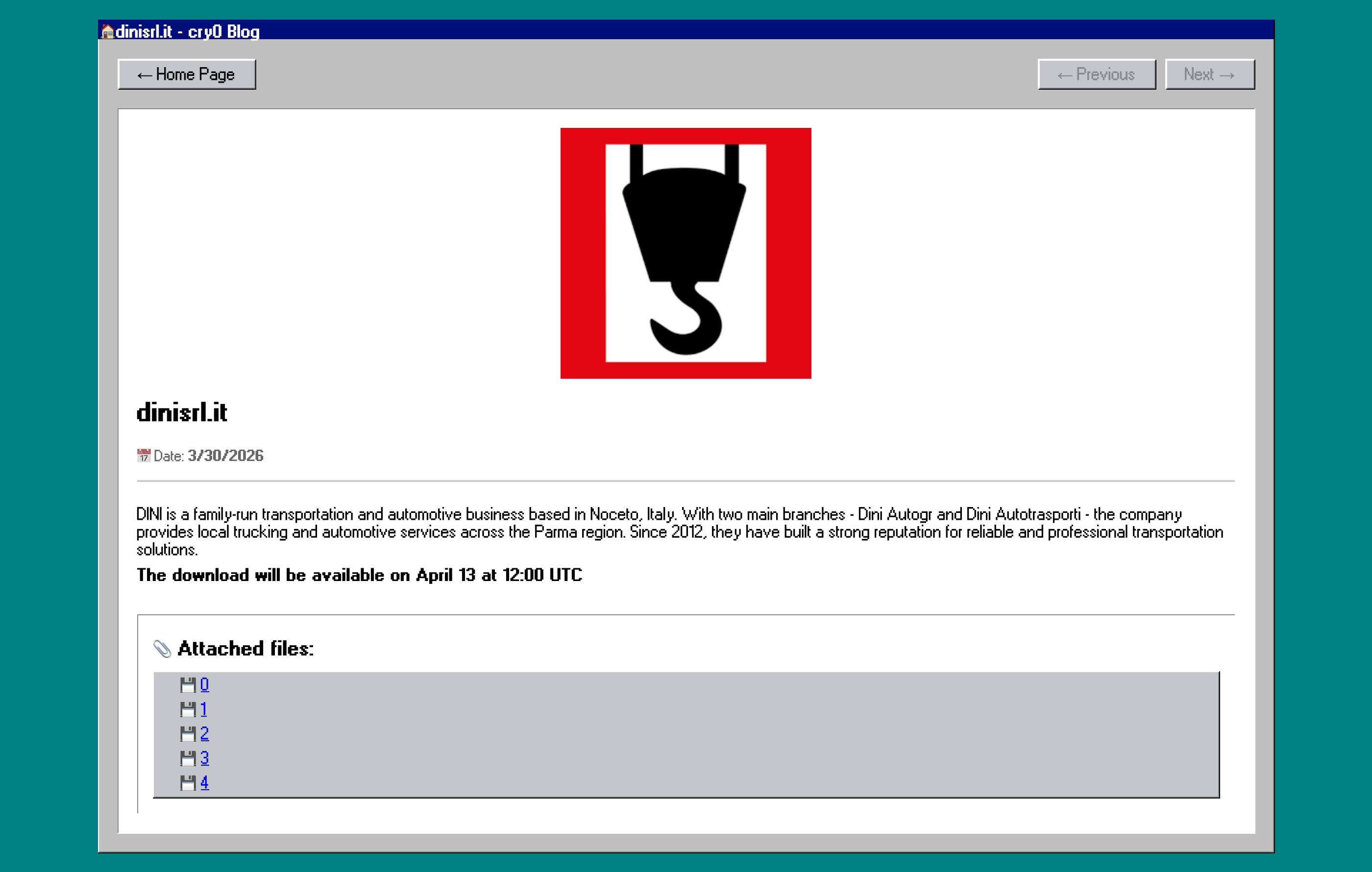 | dinisrl.it | DINI is a family-run transportation and automotive business based in Noceto, Italy. With two main branches - Dini Autogr and Dini Autotrasporti - the company provides local trucking and automotive services across the Parma region. Since 2012, they have built a strong reputation for reliable and professional transportation solutions. The download will be available on April 13 at 12:00 UTC | Screen |