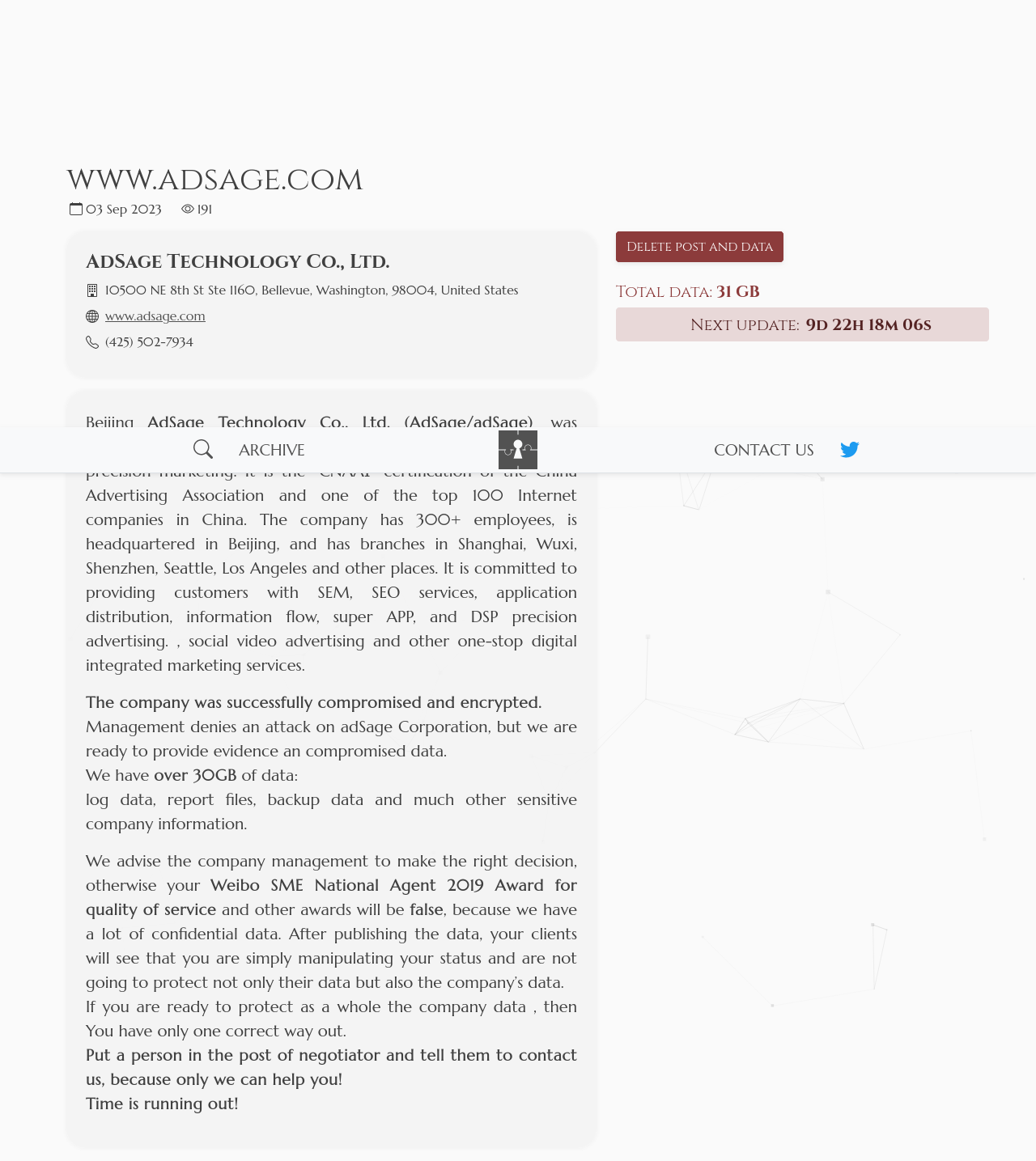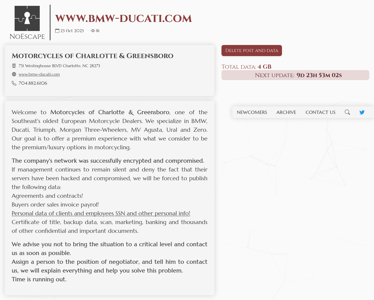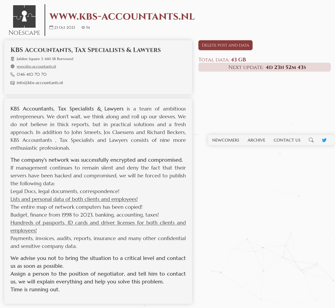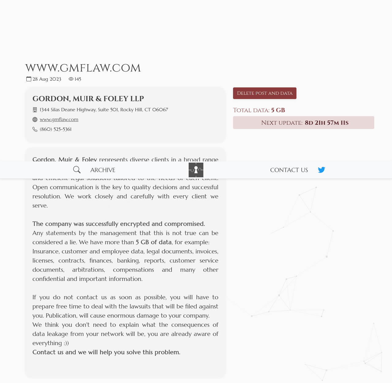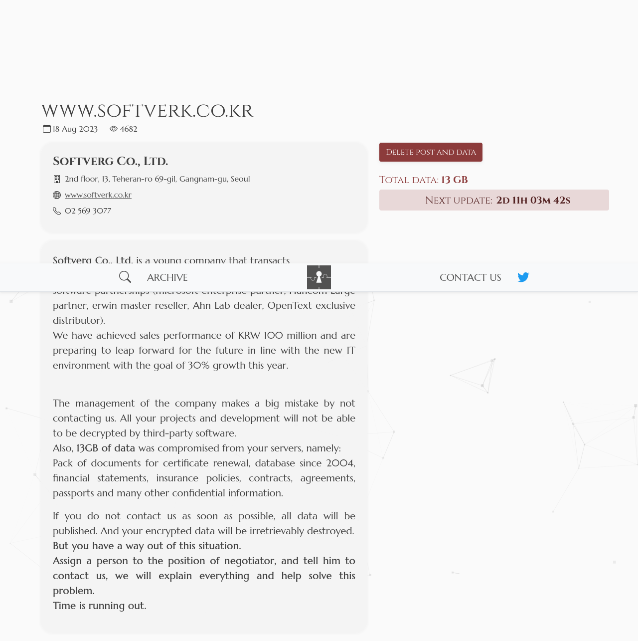If the company is not going to cooperate, then soon everyone will be able to see valuable company data in the data leak, such as tax documents and much more.
