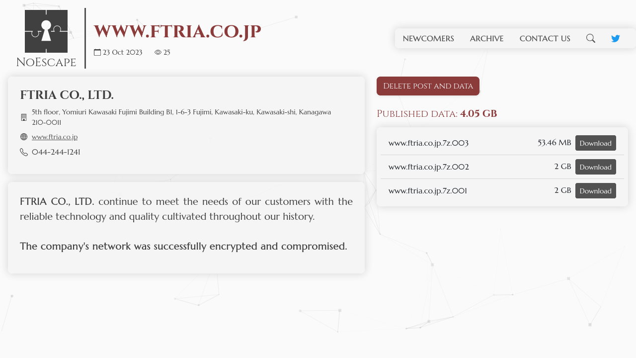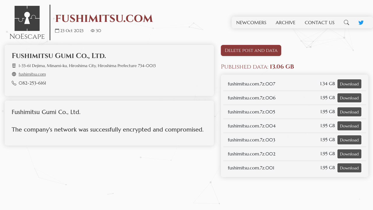 Fushimitsu Gumi Co., Ltd.The company's network was successfully encrypted and compromised.