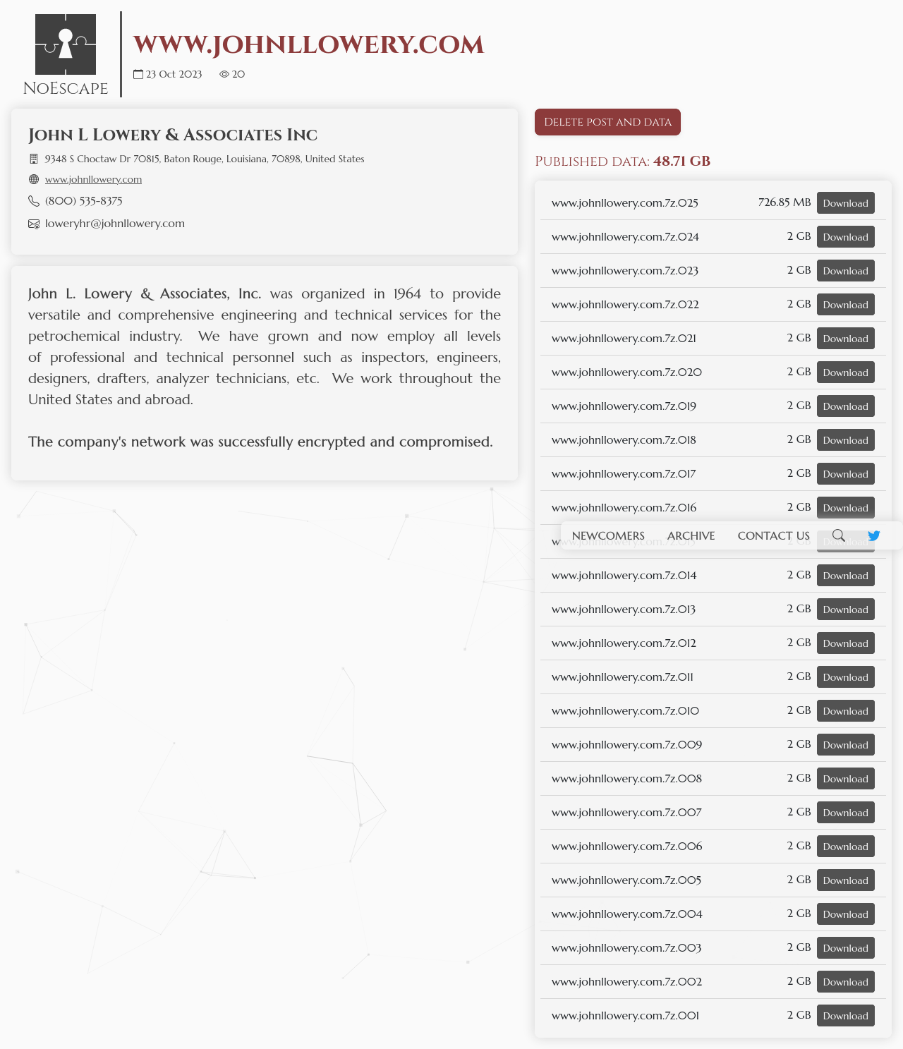 The company has been successfully compromised and we have 25GB of service data from 2...