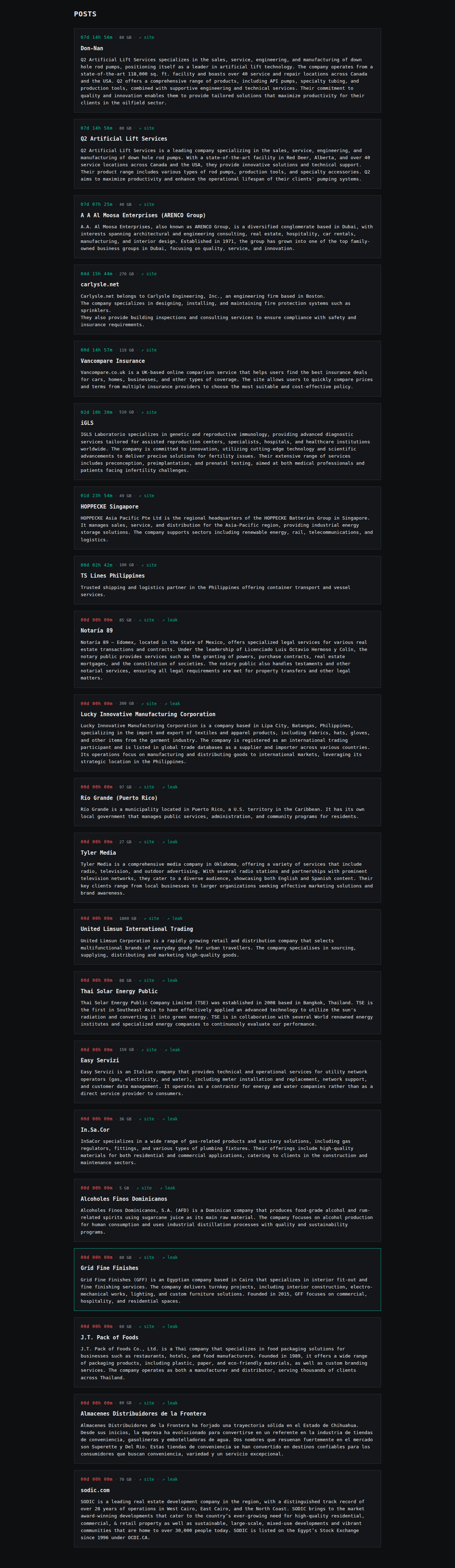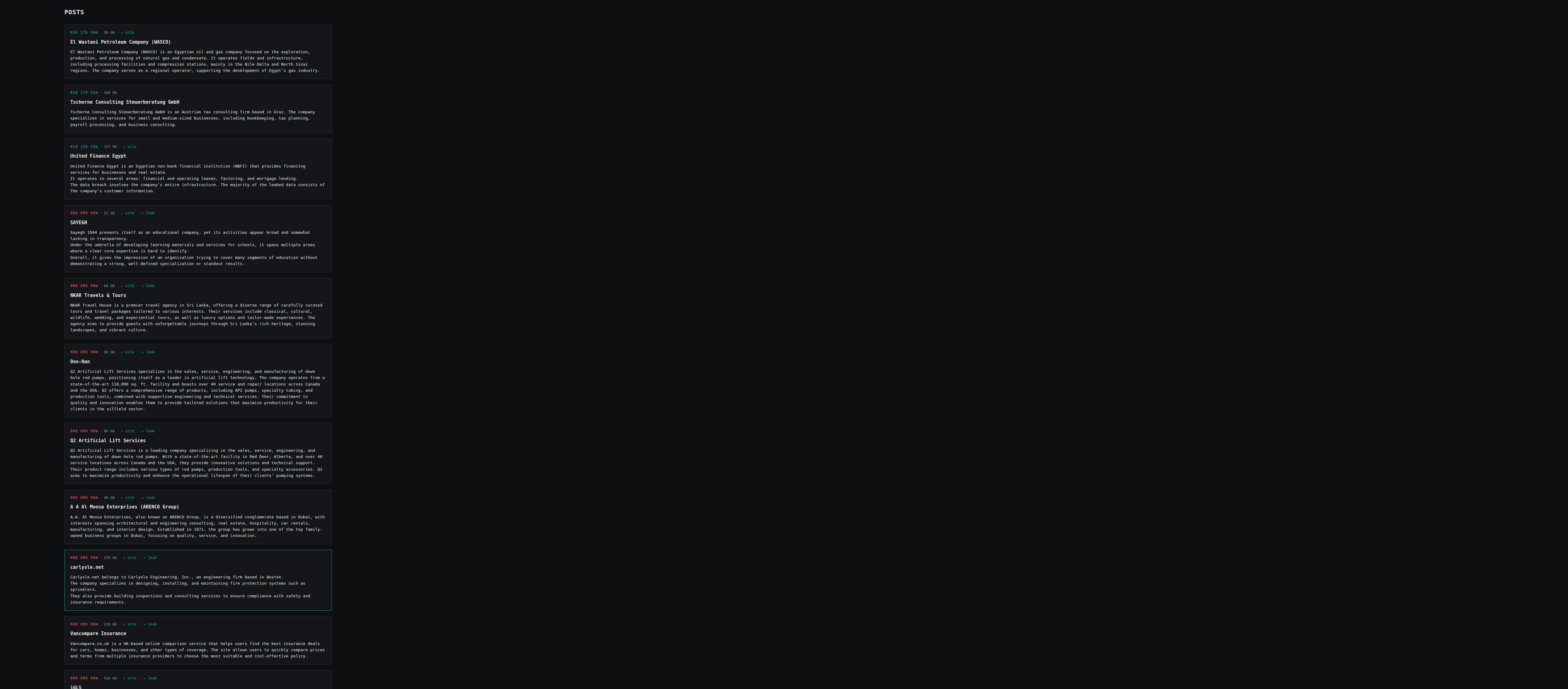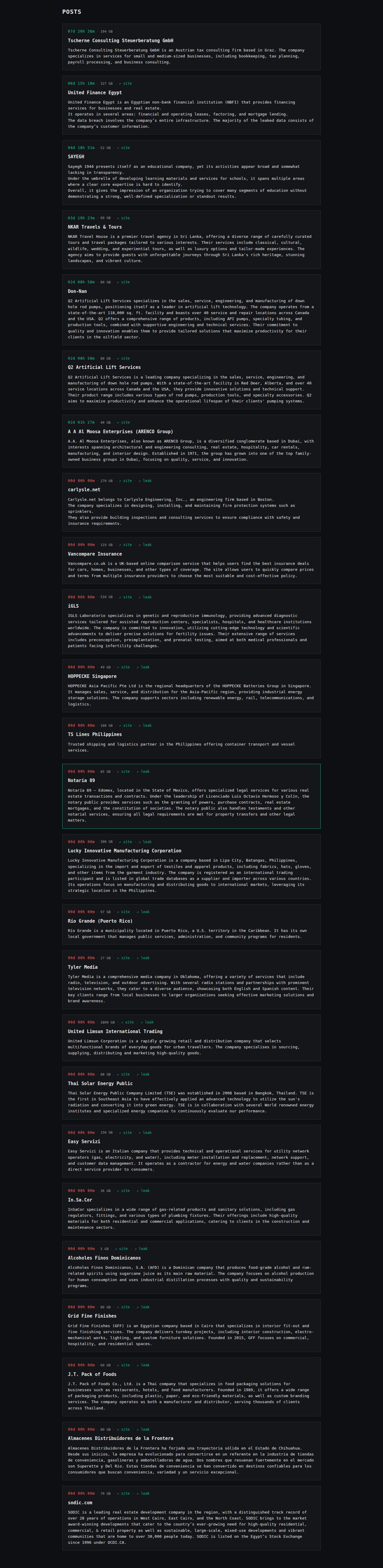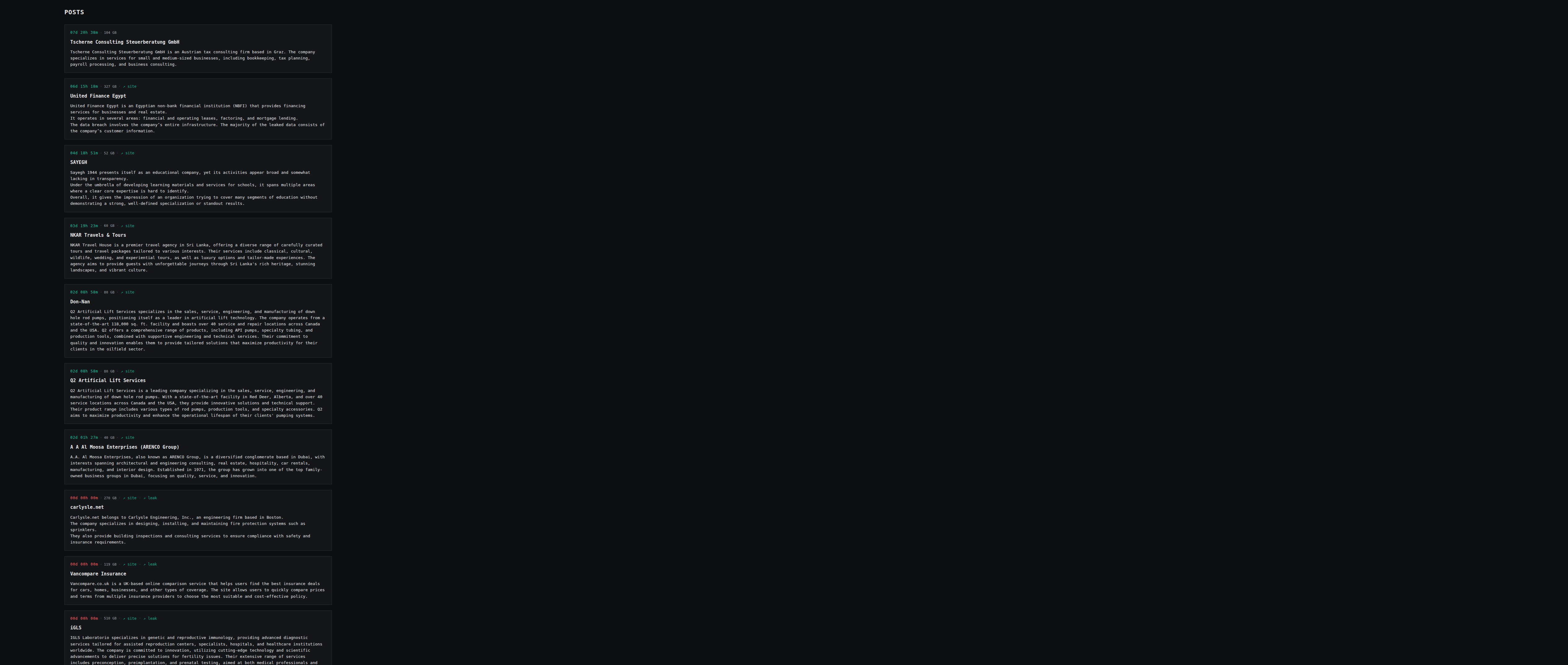 | United Finance Egypt | United Finance Egypt is an Egyptian non-bank financial institution (NBFI) that provides financing services for businesses and real estate. It operates in several areas: financial and operating leases, factoring, and mortgage lending. The data breach involves the company’s entire infrastructure. The majority of the leaked data consists of the company’s customer information. | Screen | |