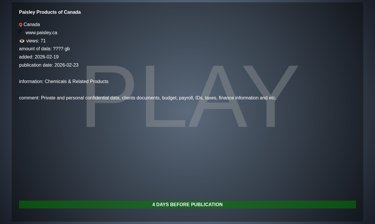 Paisley Products of Canada |
