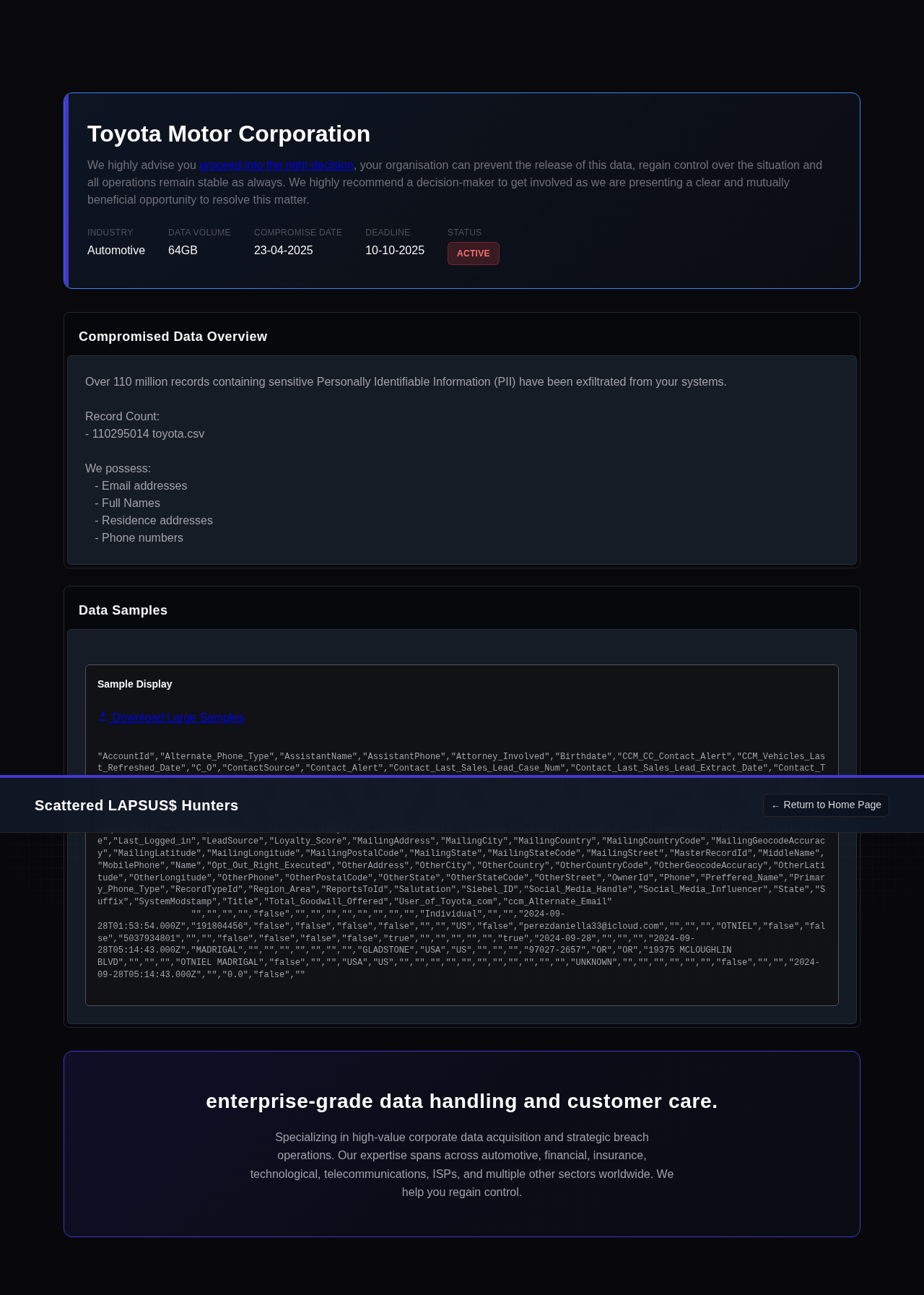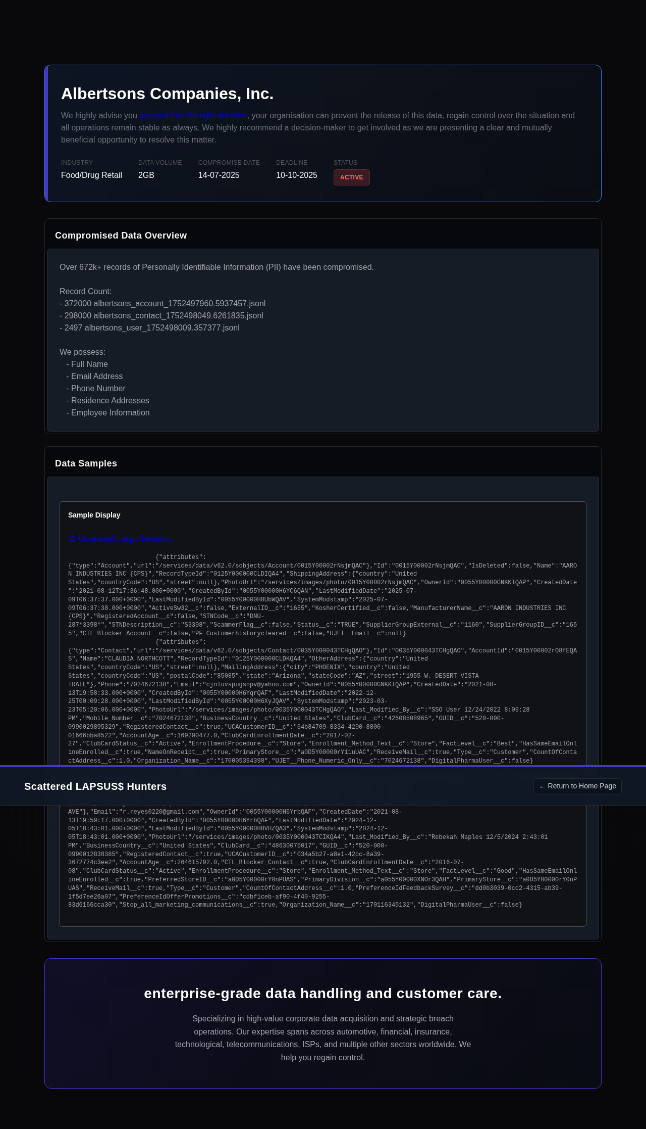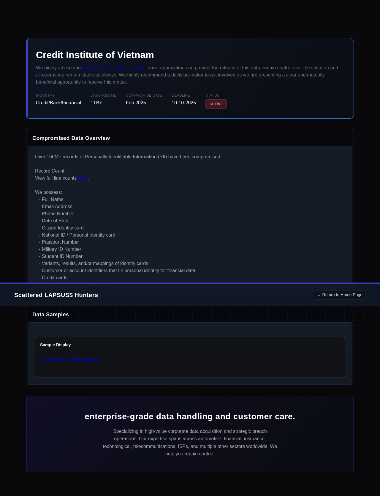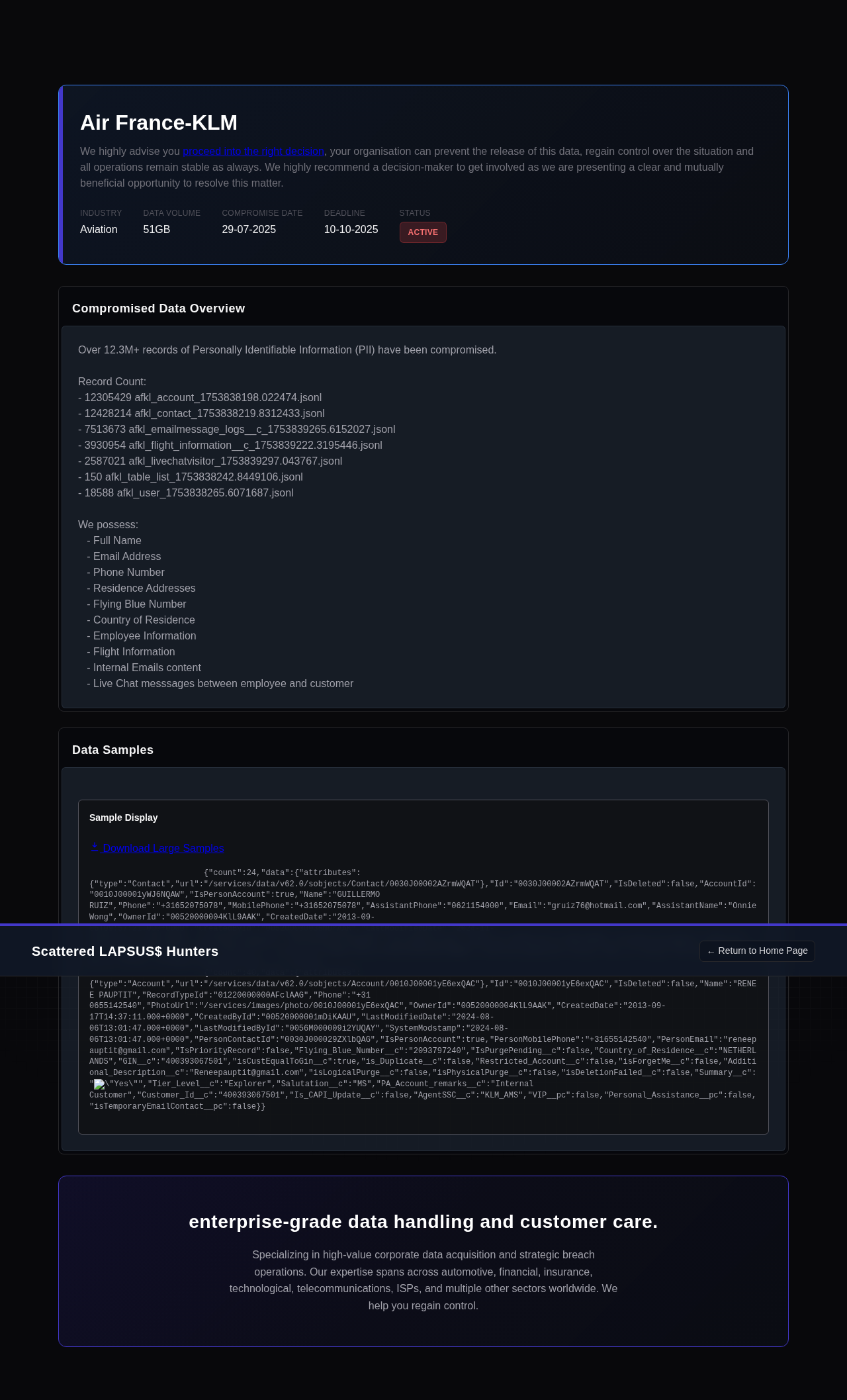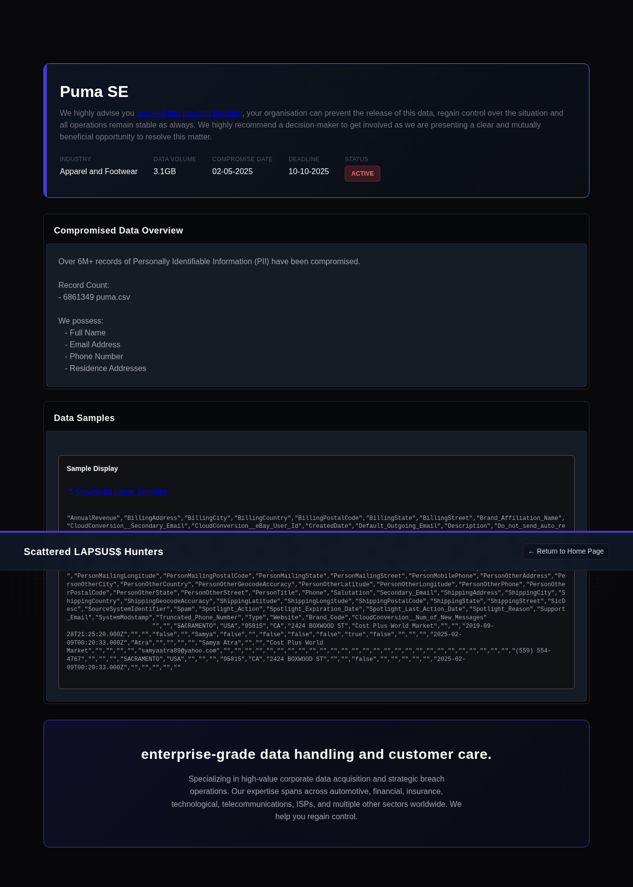 Over 2.5M+ records of Personally Identifiable Information (PII) have been compromised.