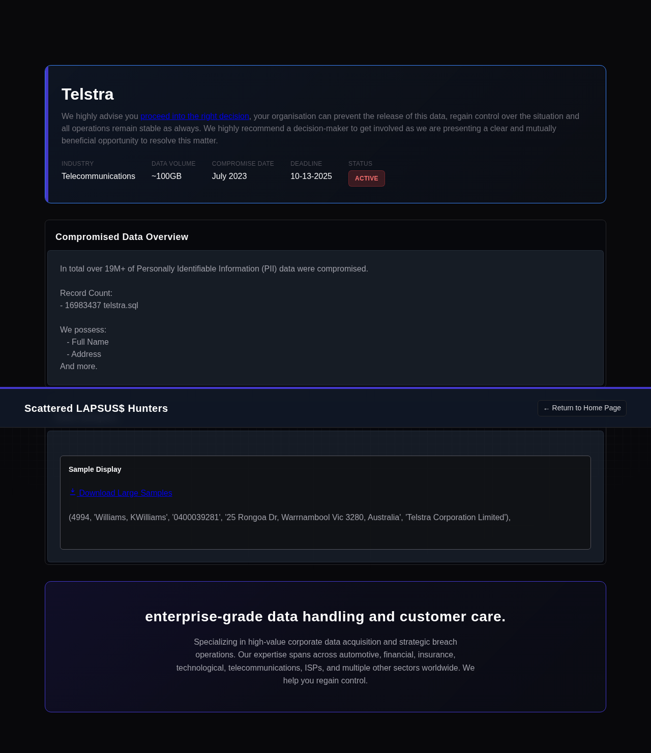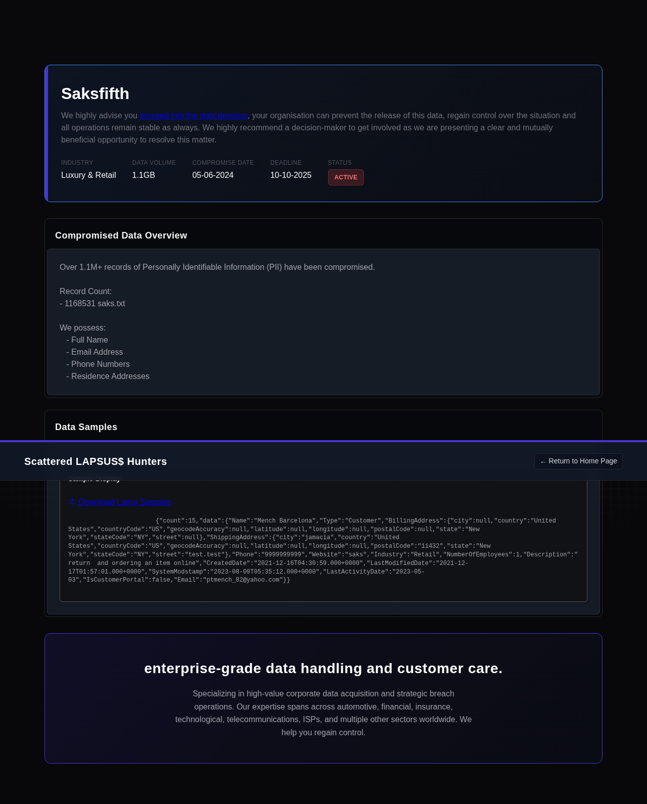 Unless you comply with our demand, as of 10/10/25 (deadline), we will be openly complying with the many law firms that are pursuing civil and commercial litigation against you. Specifically, we will be cooperating with the Berger Montague Law Firm if you do not comply with our request. Not only will we provide them with full lists of affected companies along with the information on the breach and data samples of each affected companies, we will also be contacting said companies and affected individuals from each companies with instructions to aid law firms with their lawsuits against your company.