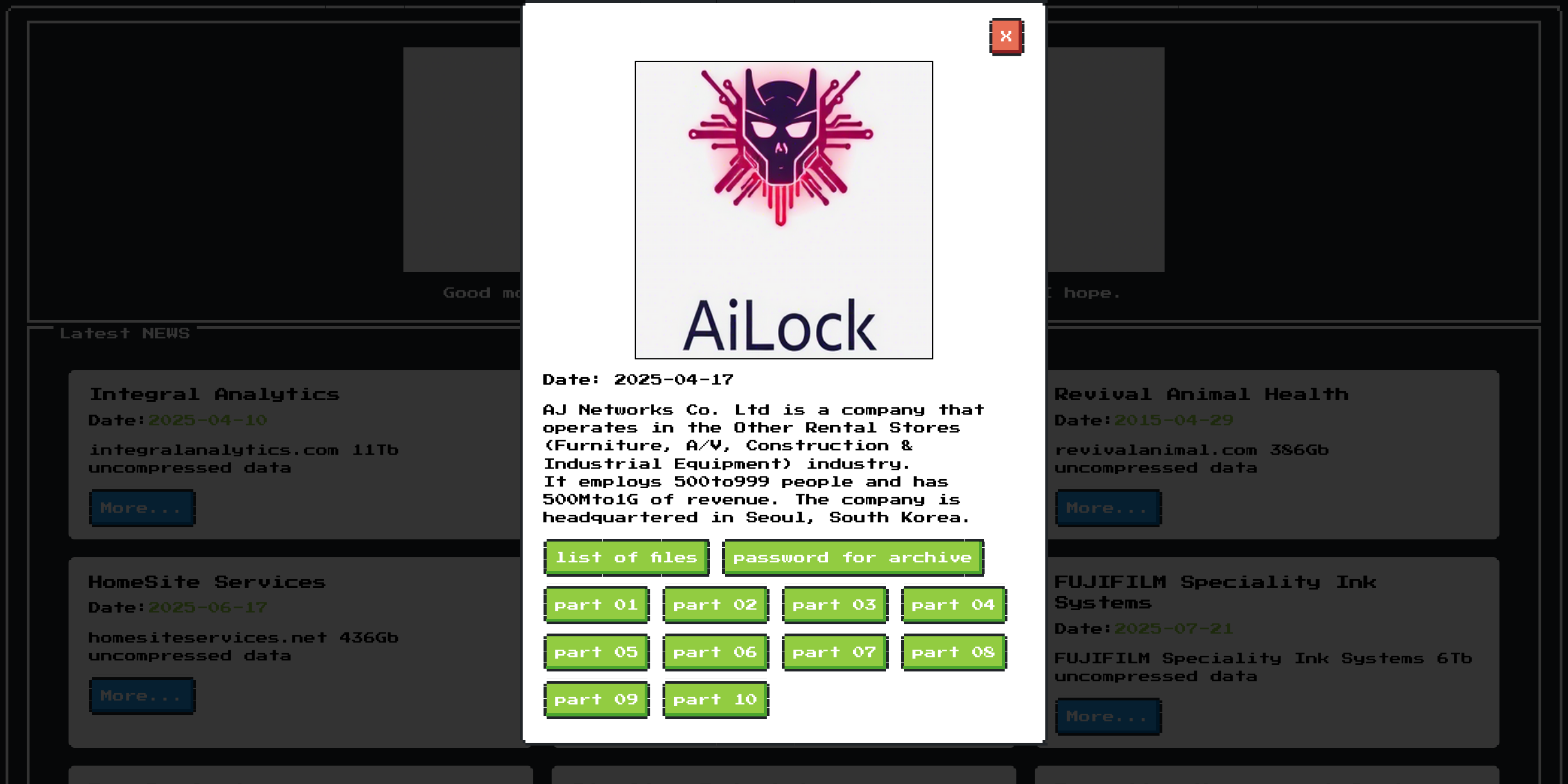 AiLock is a Ransomware-as-a-Service (RaaS) group first identified in March 2025. It employs a double-extortion approach—encrypting files and threatening to report breaches to regulators or share stolen data with competitors if the ransom isn’t paid. Victims have just 72 hours to respond and up to five days to pay; failure to pay results in data leaks and destruction of recovery tools. The ransomware appends the extension .AiLock to encrypted files, changes file icons to a green padlock with the “AiLock” name, and replaces the desktop wallpaper with a distinctive robot-skull logo. It employs a hybrid encryption scheme, combining ChaCha20 for file encryption with NTRUEncrypt for securing metadata, and uses a multi-threaded design (path-traversal and encryption threads with IOCP) for efficiency. While active campaigns and leak sites are confirmed, specific sectors, regions, and intrusion methods remain undisclosed in public sources.