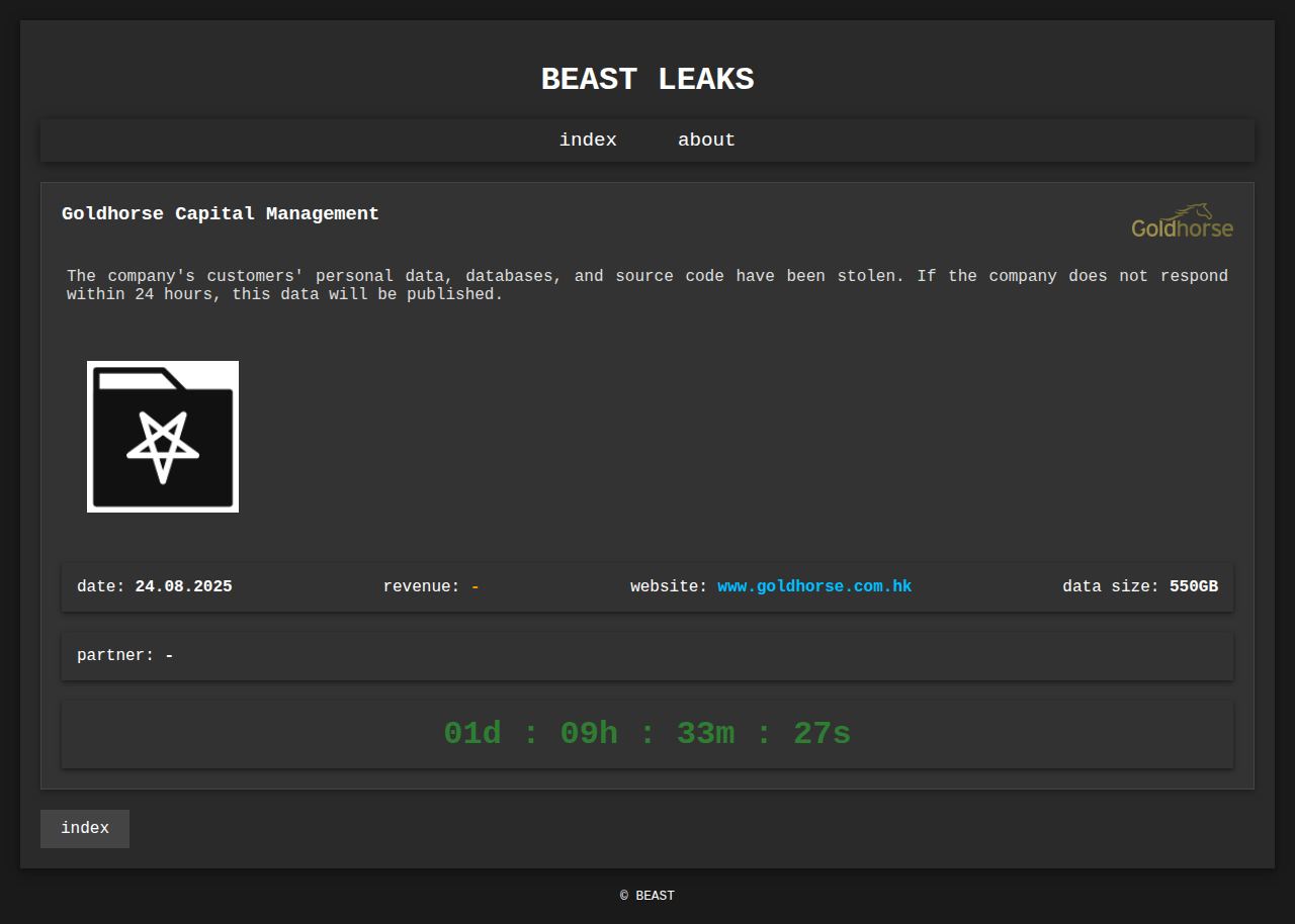 Beast ransomware emerged in 2022 as an enhanced iteration of the earlier “Monster” ransomware. It operates under a Ransomware-as-a-Service (RaaS) model, offering affiliates rich customization options to create tailored binaries targeting Windows, Linux, and VMware ESXi systems. Key technical capabilities include hybrid Elliptic-Curve + ChaCha20 encryption, segmented file encryption, ZIP wrapper mode (encrypting files into zip archives with embedded ransom notes), multithreaded processing, termination of services, shadow copy deletion, hidden partition usage, and subnet scanning. Affiliates are provided configurable offline builders, enabling streamlined deployment across multiple platforms. While Beast's functional power is well-documented, details on its specific victims, sectors targeted, and leak site activity remain limited in public sources.
