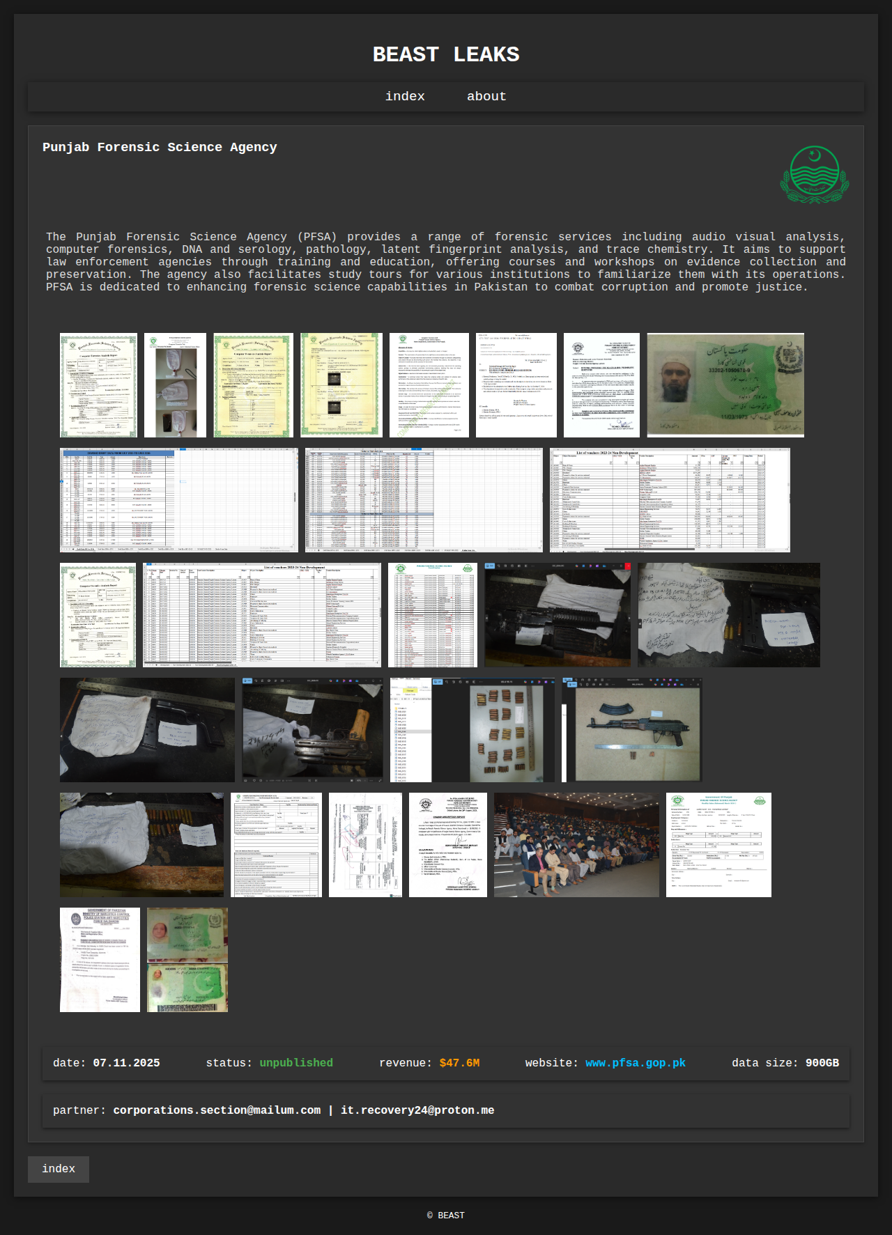 The Punjab Forensic Science Agency (PFSA) provides a range of forensic services including audio visual analysis, computer forensics, DNA and serology, pathology, latent fingerprint analysis, and trace chemistry. It aims to support law enforcement agencies through training and education, offering courses and workshops on evidence collection and preservation. The agency also facilitates study tours for various institutions to familiarize them with its operations. PFSA is dedicated to enhancing forensic science capabilities in Pakistan to combat corruption and promote justice.
