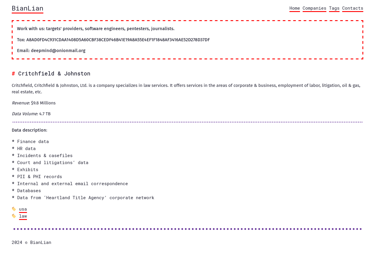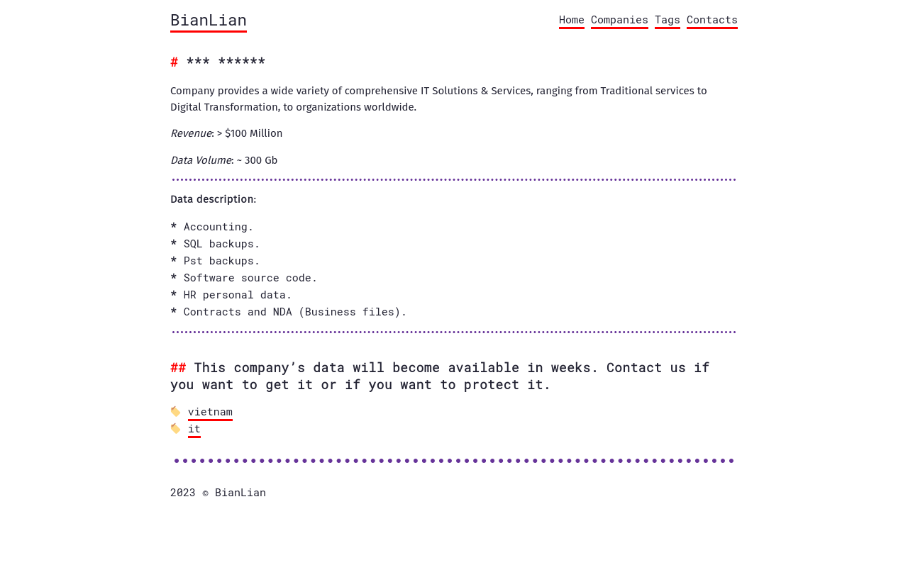 BianLian ransomware first appeared in June 2022 as a Go-based crypto-locker but pivoted in January 2023 to a pure data-extortion model after security firms released free decryptors for early versions. In its initial phase, it used AES-256 + RSA-2048 hybrid encryption, appending the .bianlian extension to files and dropping ransom notes with Tor links. The group targets a broad set of industries—healthcare, education, government, critical manufacturing, and professional services—with confirmed victims in the U.S., U.K., Australia, and Canada. Initial access is often obtained via compromised RDP credentials, exploitation of vulnerabilities in internet-facing systems, or use of stolen VPN credentials from infostealers. Post-compromise, BianLian conducts network reconnaissance, credential harvesting, and exfiltration of sensitive files before issuing extortion threats on its leak site. The group has claimed responsibility for dozens of breaches, with ransom demands often in the $100k–$2 million USD range.