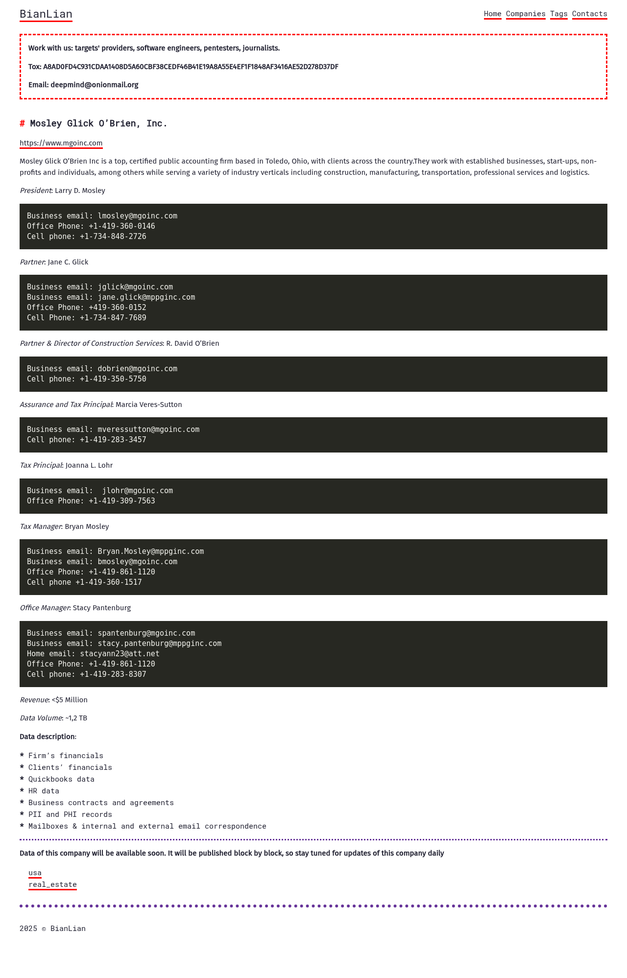 Mosley Glick O'Brien Inc is a top, certified public accounting firm based in Toledo, Ohio, with clients across the country.They work with established businesses, start-ups, non-profits and individuals, among others while serving a variety of industry verticals including construction, manufacturing, transportation, professional services and logistics.