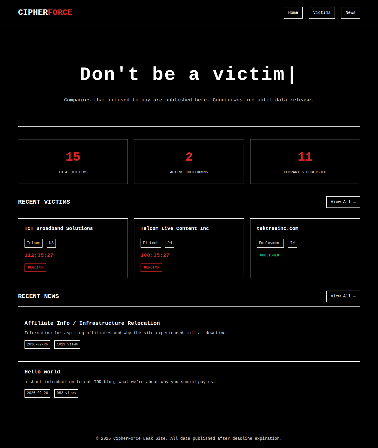 For those out of the loop, you may already know us as TeamPCP or Shellforce, we have been active a while publishing data and writing malware, CipherForce is a newer project we are starting to find affiliates and are hoping to begin publishing companies soon.