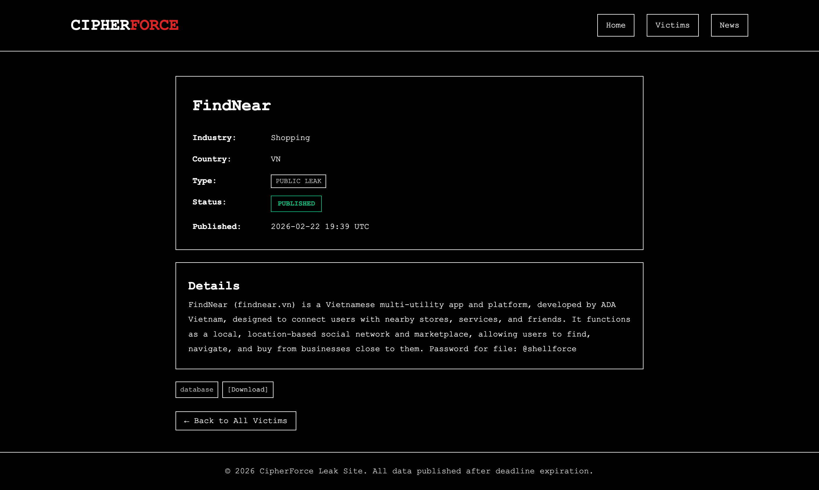 FindNear (findnear.vn) is a Vietnamese multi-utility app and platform, developed by ADA Vietnam, designed to connect users with nearby stores, services, and friends. It functions as a local, location-based social network and marketplace, allowing users to find, navigate, and buy from businesses close to them. Password for file: @shellforce