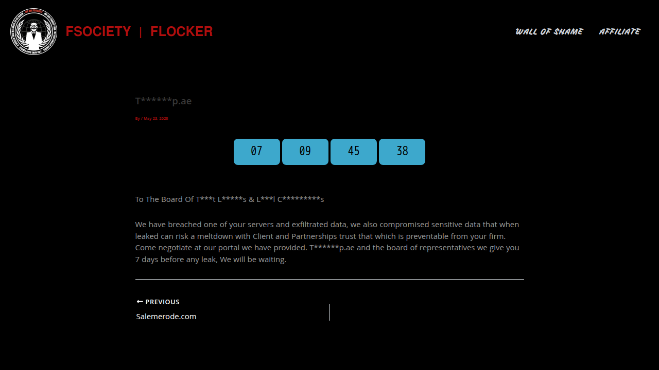 To The Board Of T***t L*****s & L***l C*********s We have breached one of your servers and exfiltrated data, we […]