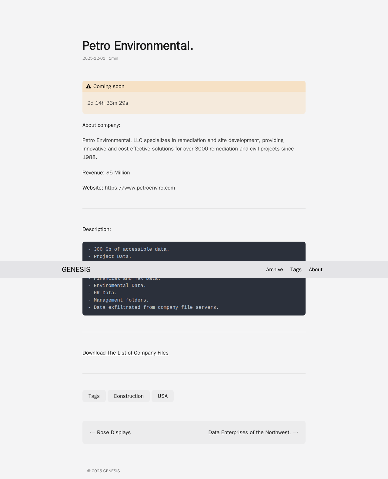 | Southern Specialty and Supply | About company: Southern Specialty & Supply, Inc. is a reliable supplier for the oil and gas industry, serving the Gulf Coast region since 1987. Revenue: $5 Million Website: https://southernspecialtysupply.com Description: -400 Gb of data available. -Data from employees and management hosts. -Data from company fileserver. -Operational data. | Screen | |