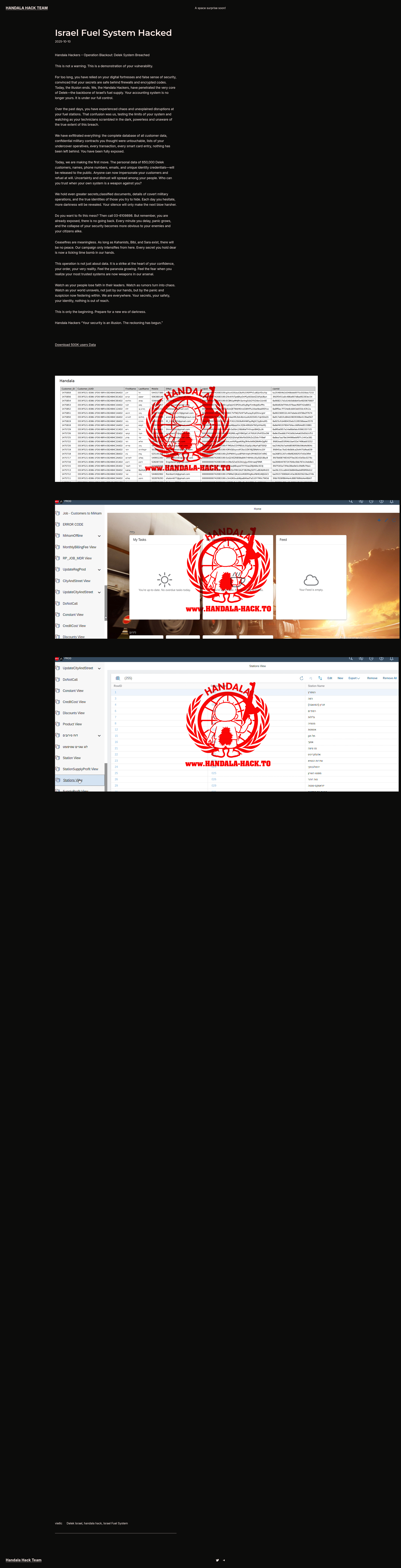 Handala Hackers ā Operation Blackout: Delek System Breached This is not a warning. This is a demonstration of your vulnerability. For too long, you have relied on your digital fortresses and false sense of security, convinced that your secrets are safe behind firewalls and encrypted codes. Today, the illusion ends. We, the Handala Hackers, have⦠|