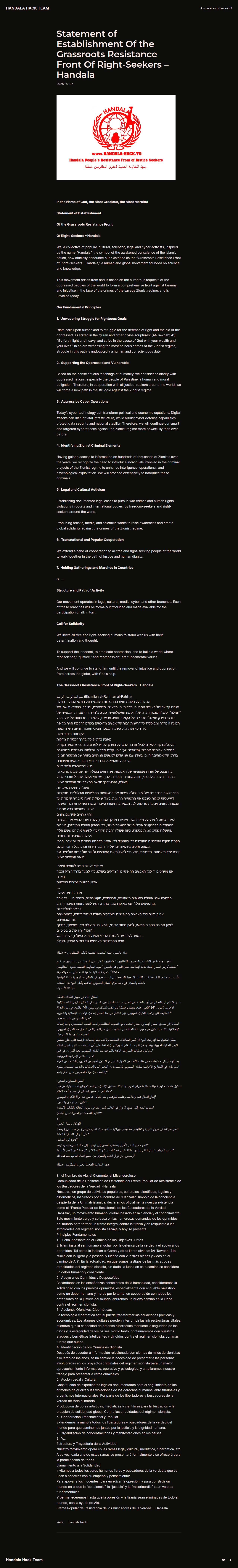Statement of Establishment Of the Grassroots Resistance Front Of Right-Seekers ā Handala |