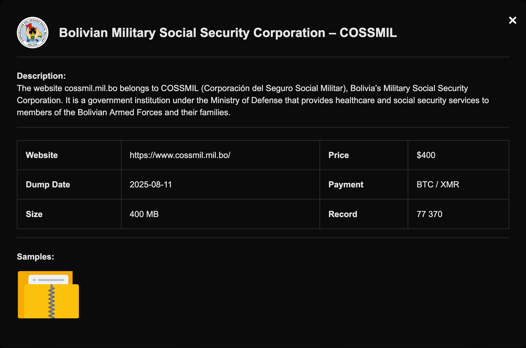 Bolivian Military Social Security Corporation – COSSMIL