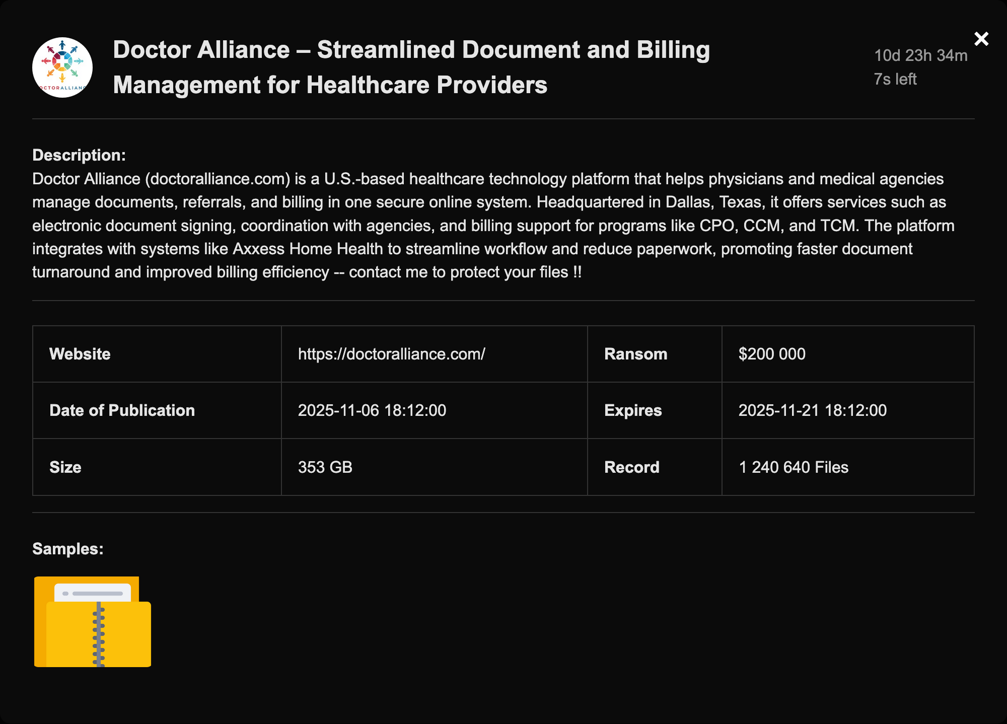 Doctor Alliance (doctoralliance.com) is a U.S.-based healthcare technology platform that helps physicians and medical agencies manage documents, referrals, and billing in one secure online system. Headquartered in Dallas, Texas, it offers services such as electronic document signing, coordination with agencies, and billing support for programs like CPO, CCM, and TCM. The platform integrates with systems like Axxess Home Health to streamline workflow and reduce paperwork, promoting faster document turnaround and improved billing efficiency -- contact me to protect your files !!