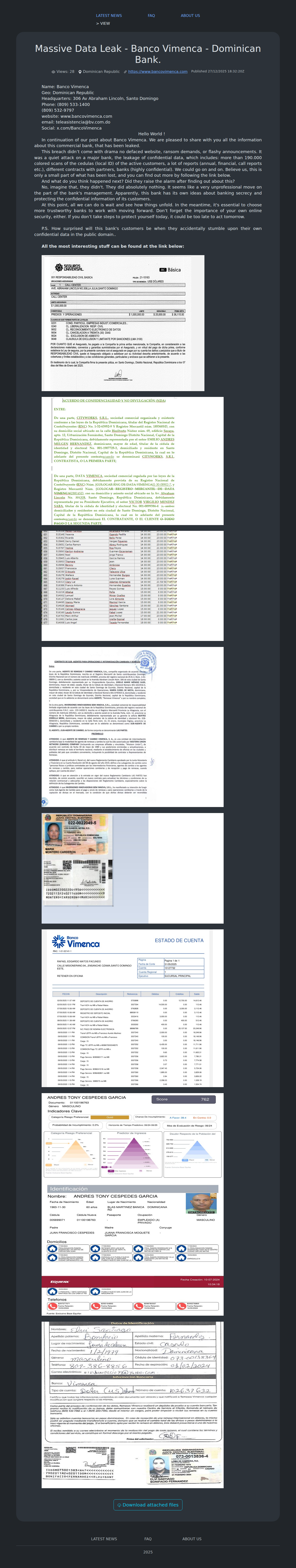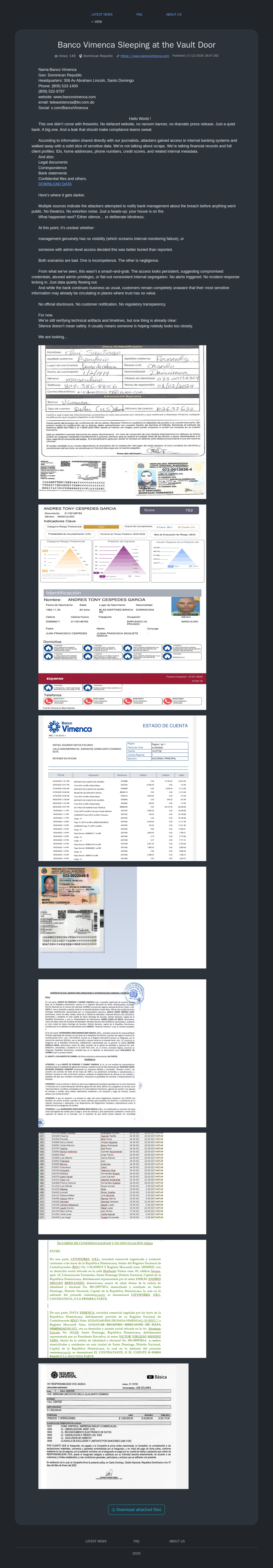 | Banco Vimenca Sleeping at the Vault Door | #DataLeak #Breach #BancoVimenca 1% of data already available! | Screen | |