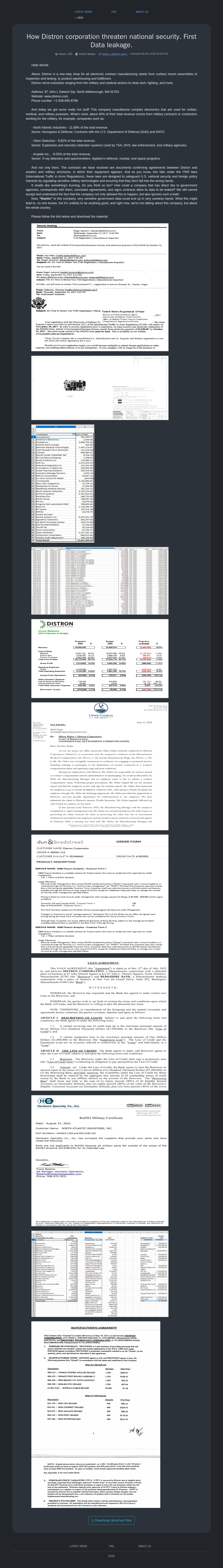 | How Distron corporation threaten national security. First Data leakage. | #InfoLeak #DigitalThreat #DataExposed #SecurityFailure #CyberAttack | Screen | |