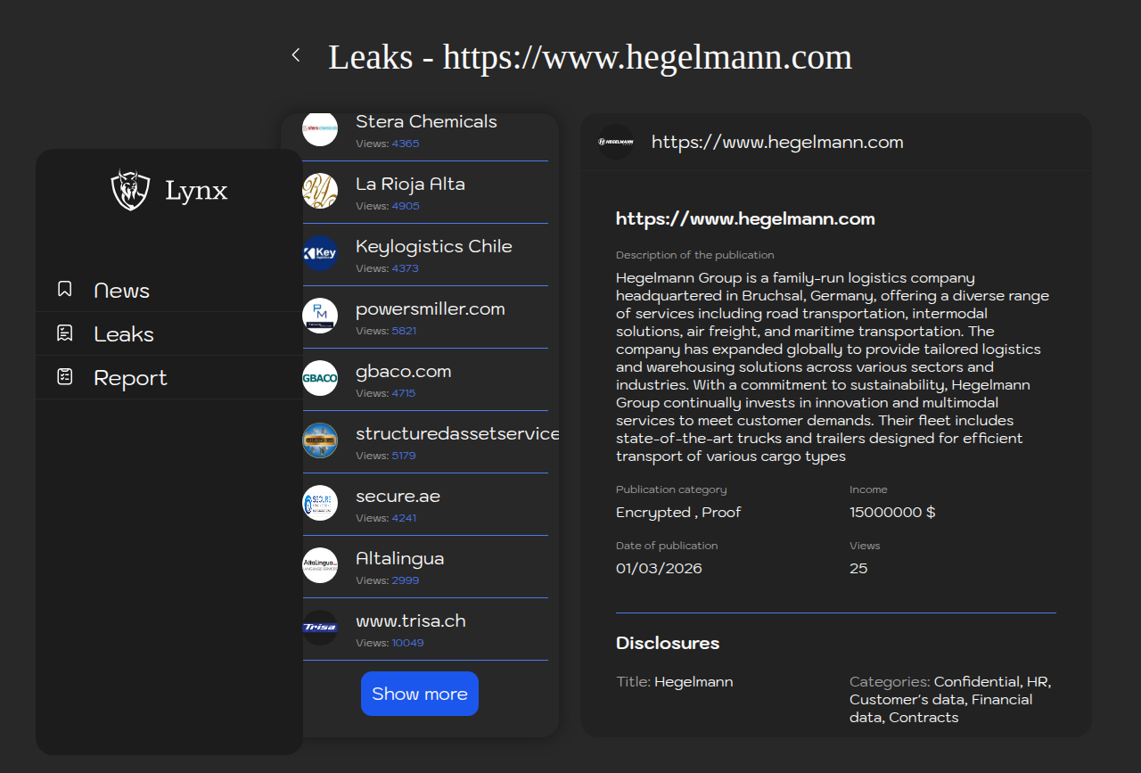 | https://www.hegelmann.com | Hegelmann Group is a family-run logistics company headquartered in Bruchsal, Ger... | Screen | |