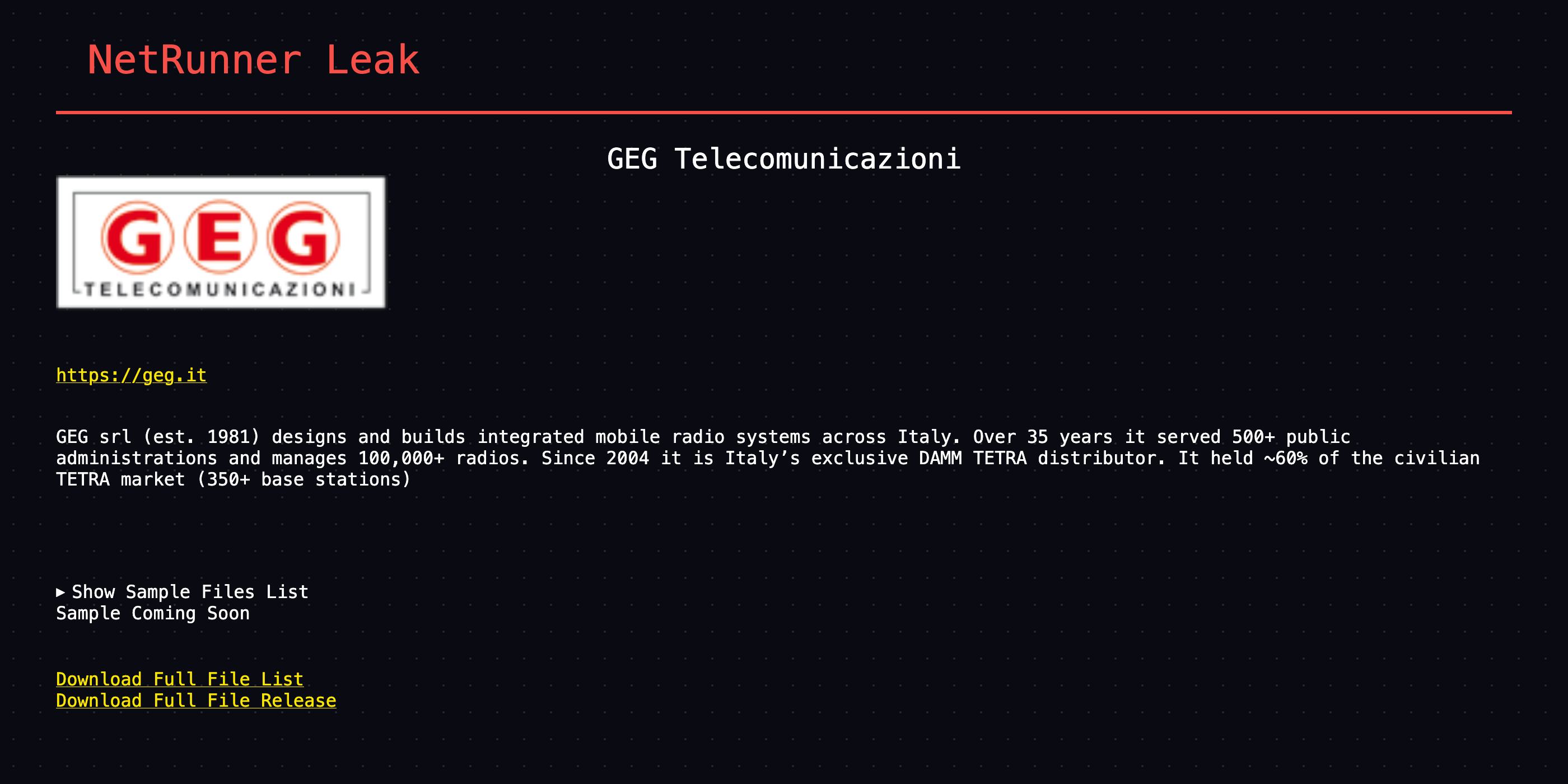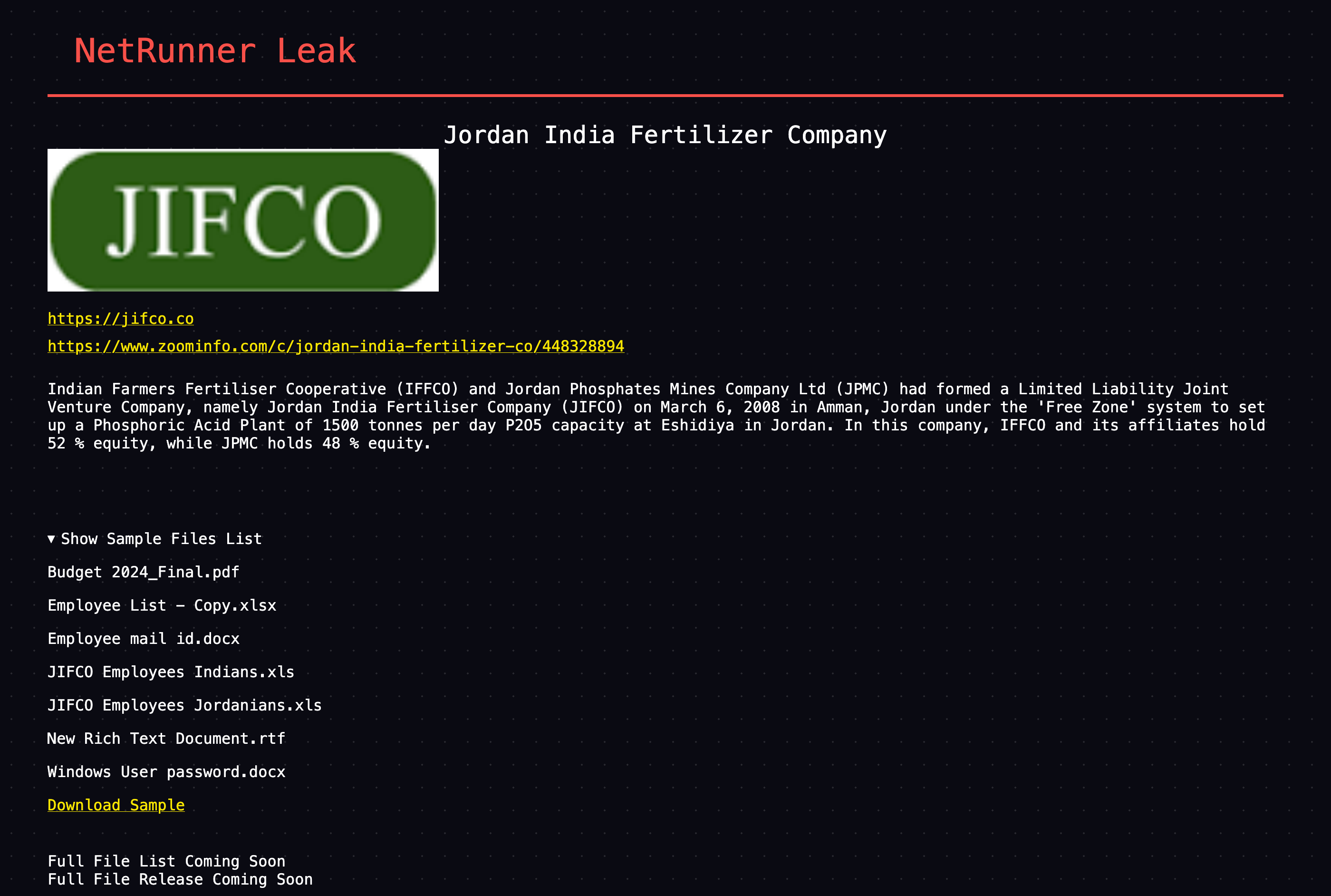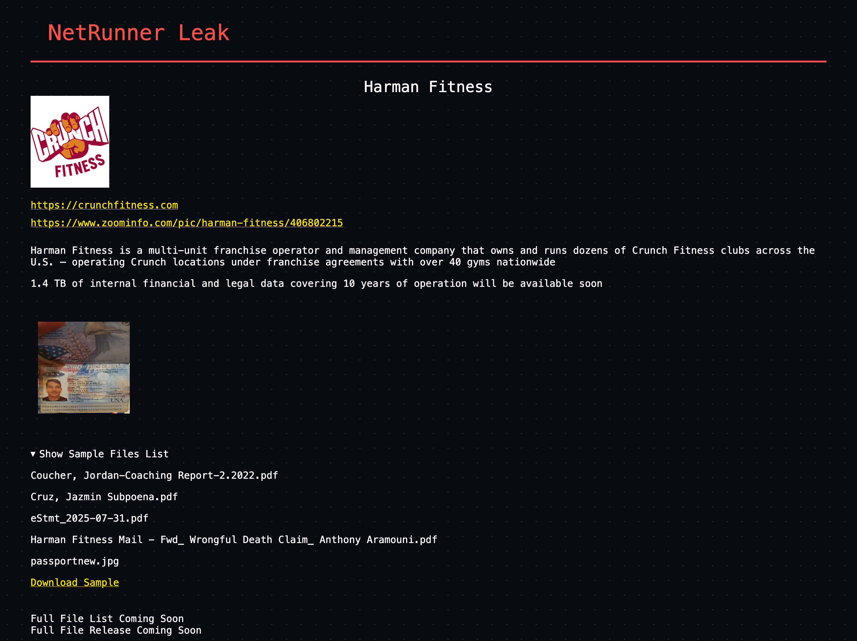 1.4 TB of internal financial and legal data covering 10 years of operation will be available soon