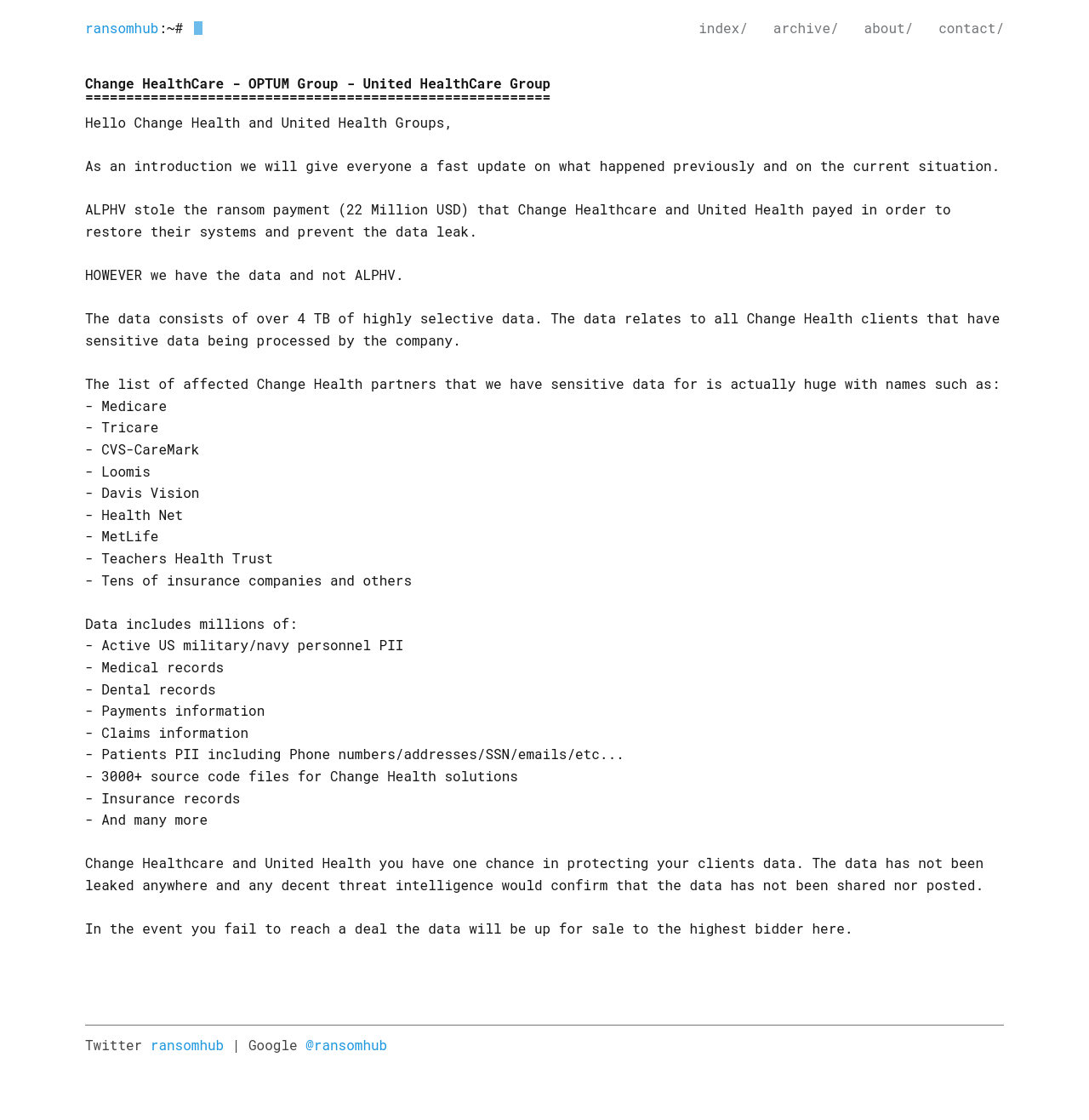 | Change HealthCare - OPTUM Group - United HealthCare Group - FOR SALE | Screen | ||