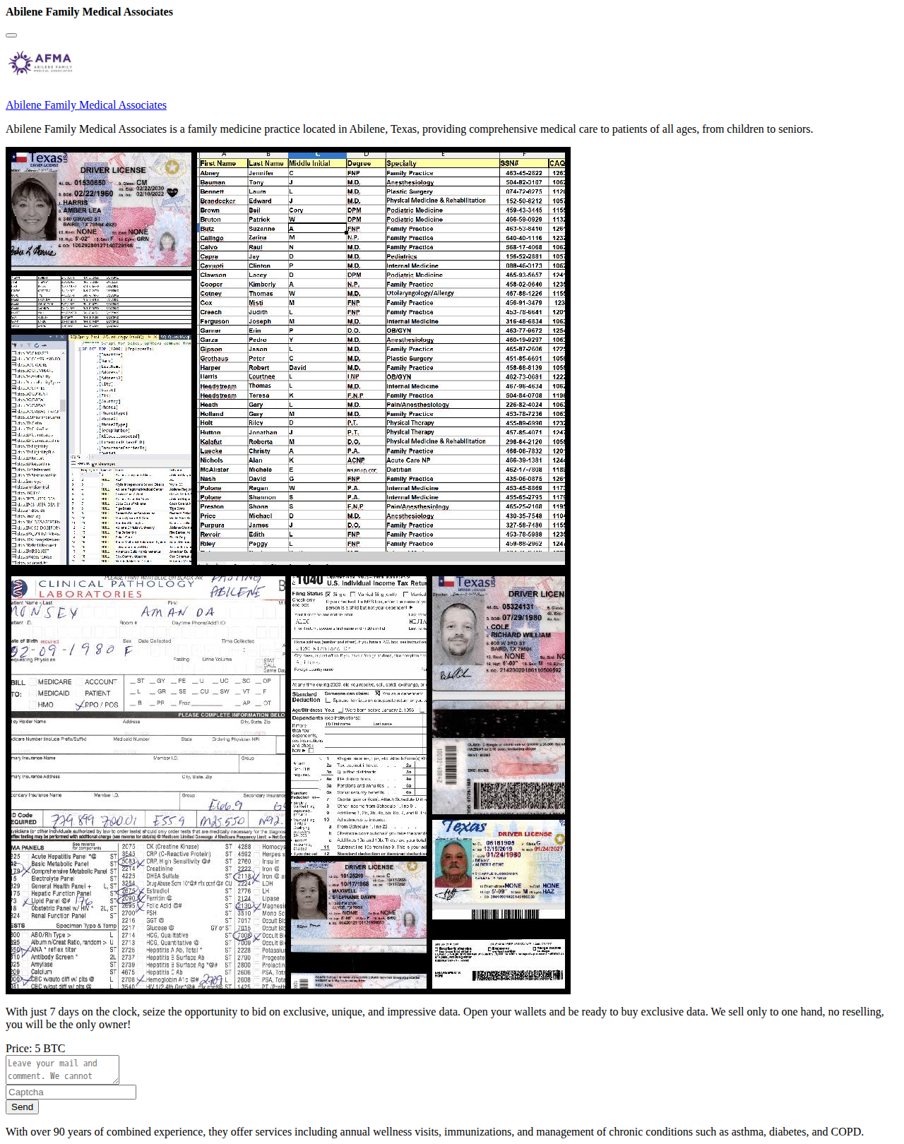BIG sale!!! Introducing our new partners - Prospect Medical Holdings. They kindly provided: more than 500000 SNNs, passports of their clients and employees, driver's licenses, patient files (profile, medical history), financial and legal documents!!! If you are interested in our partner's confidential documents, you will be able to purchase them too!!! Total 1TB unique files, as well as 1.3TB SQL database.