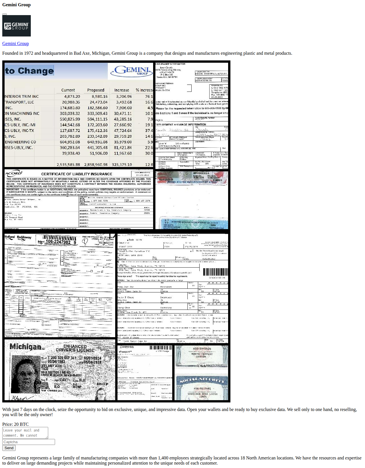 Founded in 1972 and headquartered in Bad Axe, Michigan, Gemini Group is a company that designs and manufactures engineering plastic and metal products.