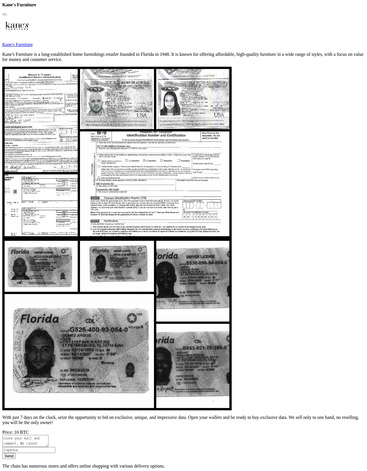 Kane's Furniture is a long-established home furnishings retailer founded in Florida in 1948. It is known for offering affordable, high-quality furniture in a wide range of styles, with a focus on value for money and customer service.