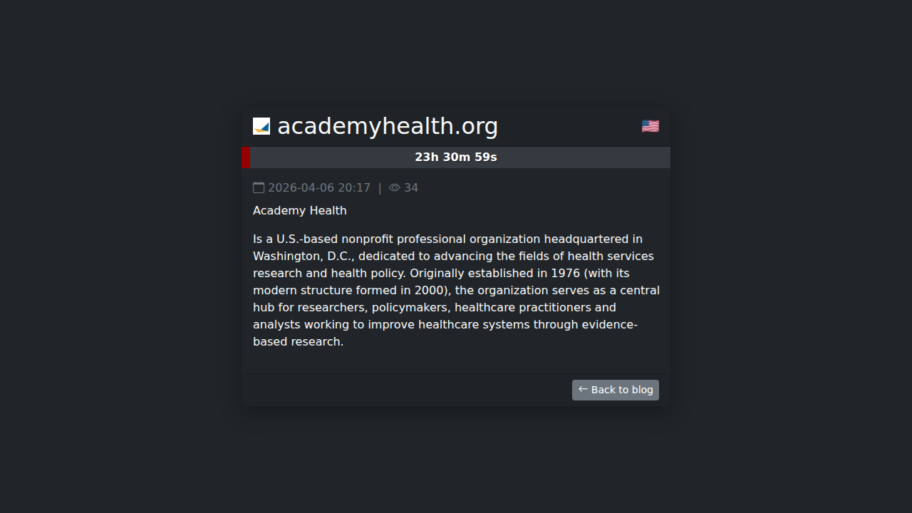 Is a U.S.-based nonprofit professional organization headquartered in Washington, D.C., dedicated to advancing the fields of health services research and …