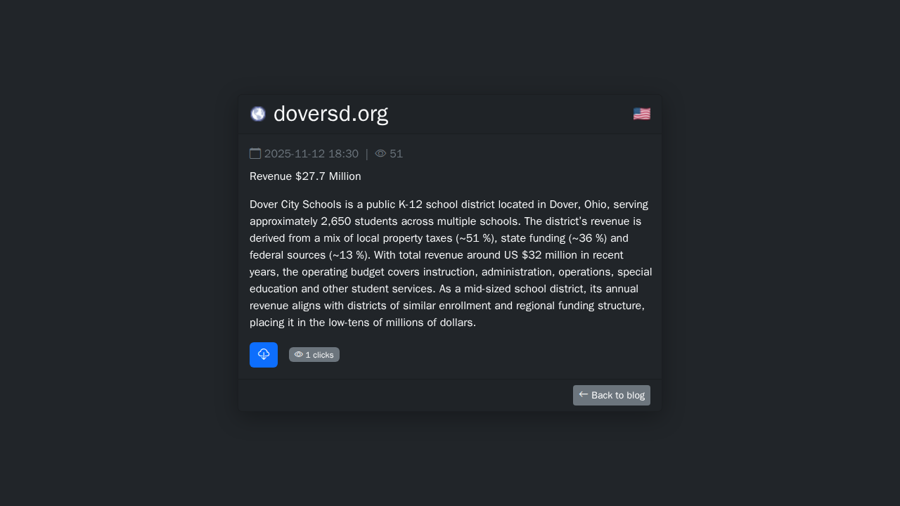 Dover City Schools is a public K-12 school district located in Dover, Ohio, serving approximately 2,650 students across multiple schools. …