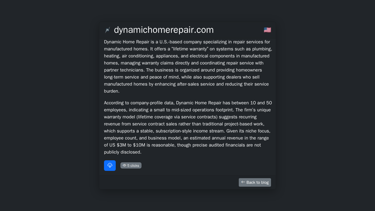 Dynamic Home Repair is a U.S.-based company specializing in repair services for manufactured homes. It offers a “lifetime warranty” on …