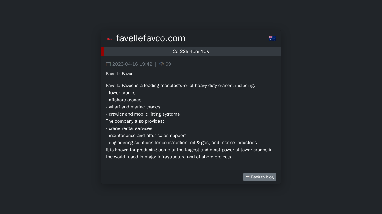 Favelle Favco is a leading manufacturer of heavy-duty cranes, including: - tower cranes - offshore cranes - wharf and marine …