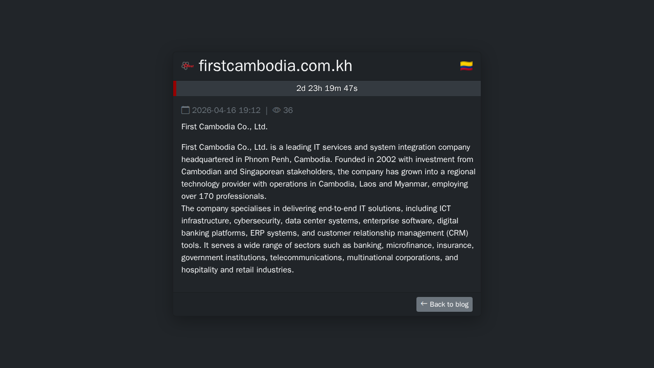 First Cambodia Co., Ltd. is a leading IT services and system integration company headquartered in Phnom Penh, Cambodia. Founded in …