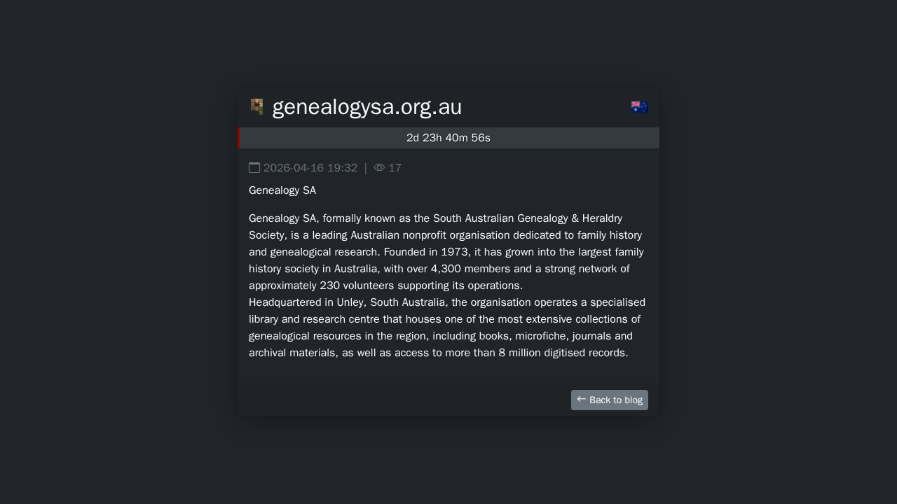 Genealogy SA, formally known as the South Australian Genealogy & Heraldry Society, is a leading Australian nonprofit organisation dedicated to …