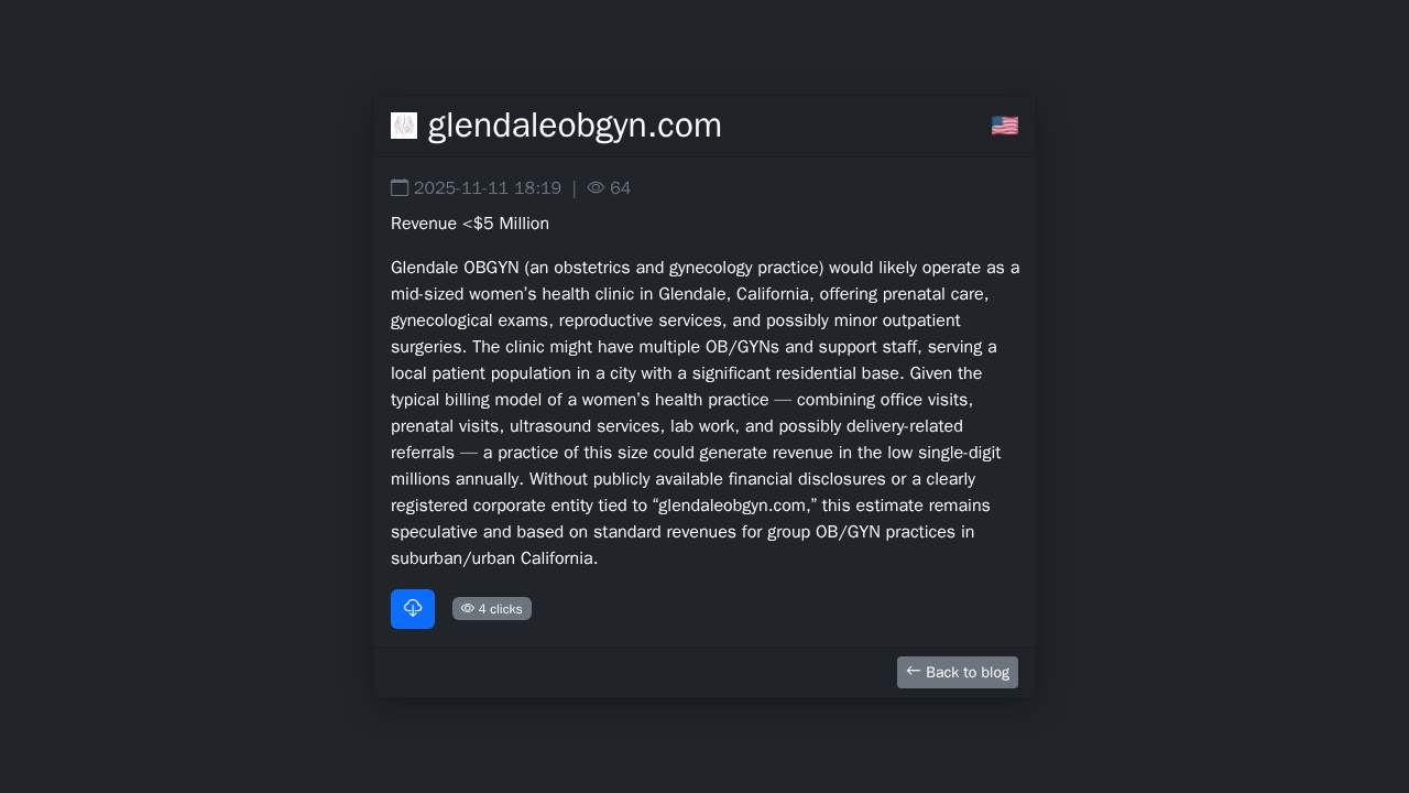 Glendale OBGYN (an obstetrics and gynecology practice) would likely operate as a mid-sized women’s health clinic in Glendale, California, offering …