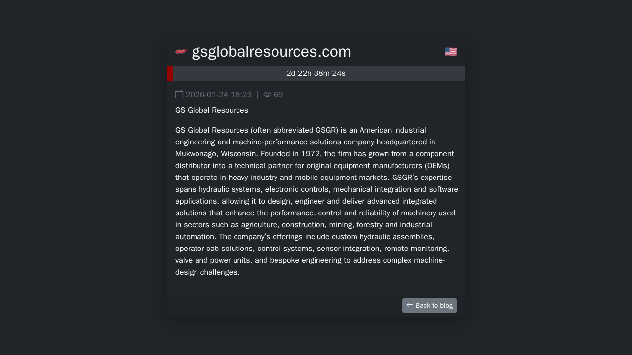 GS Global Resources (often abbreviated GSGR) is an American industrial engineering and machine-performance solutions company headquartered in Mukwonago, Wisconsin. Founded …
