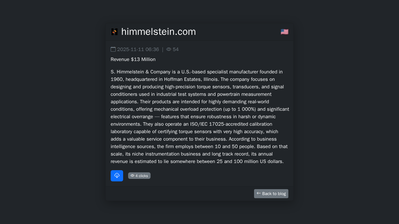 S. Himmelstein & Company is a U.S.-based specialist manufacturer founded in 1960, headquartered in Hoffman Estates, Illinois. The company focuses …