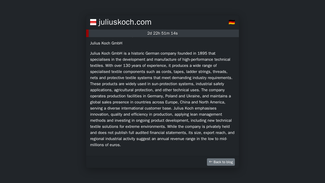Julius Koch GmbH is a historic German company founded in 1895 that specialises in the development and manufacture of high-performance …