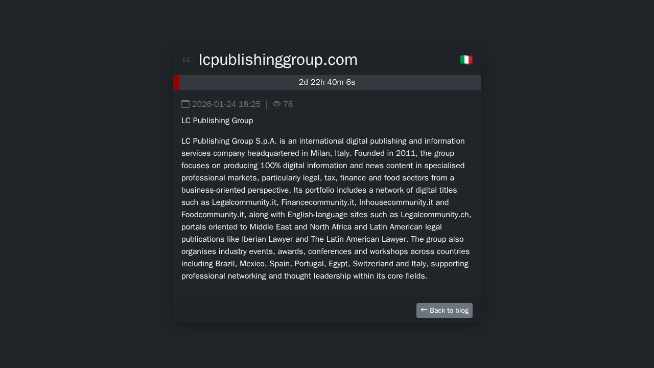 LC Publishing Group S.p.A. is an international digital publishing and information services company headquartered in Milan, Italy. Founded in 2011, …