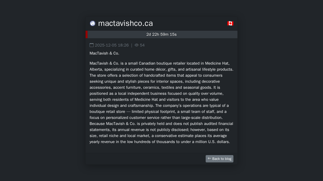 MacTavish & Co. is a small Canadian boutique retailer located in Medicine Hat, Alberta, specializing in curated home décor, gifts, …