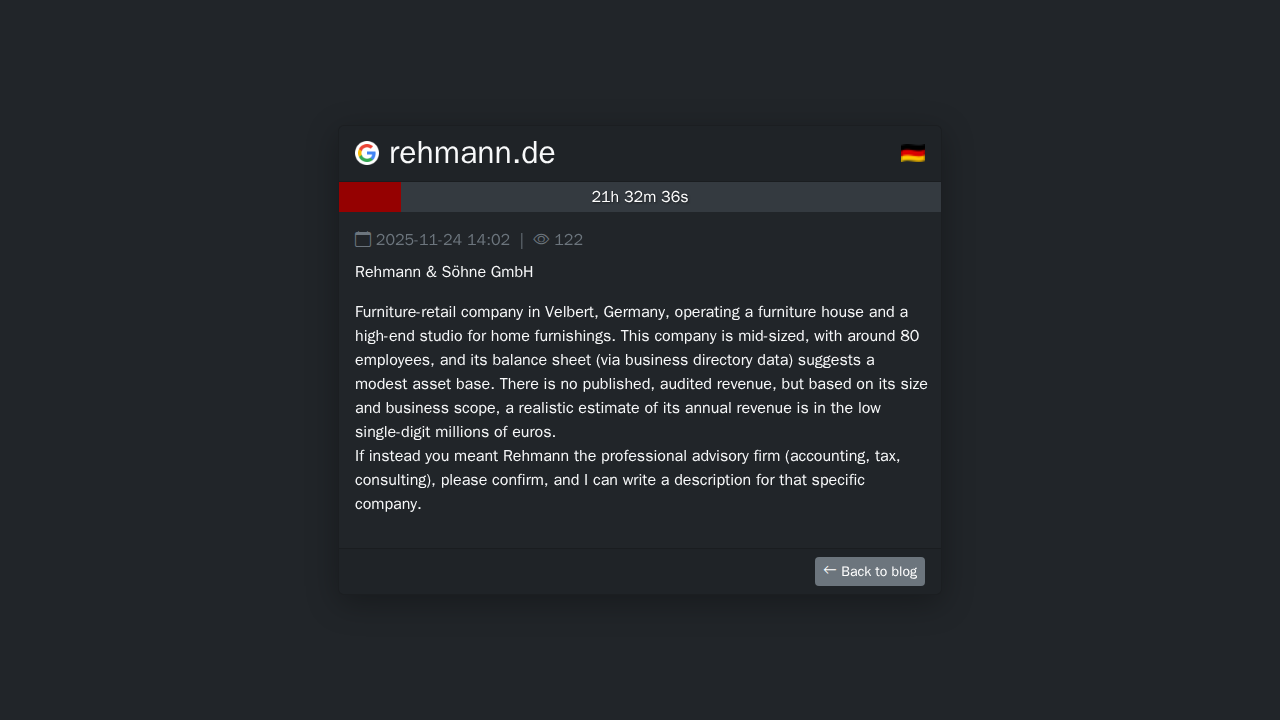 Furniture-retail company in Velbert, Germany, operating a furniture house and a high-end studio for home furnishings. This company is mid-sized, …