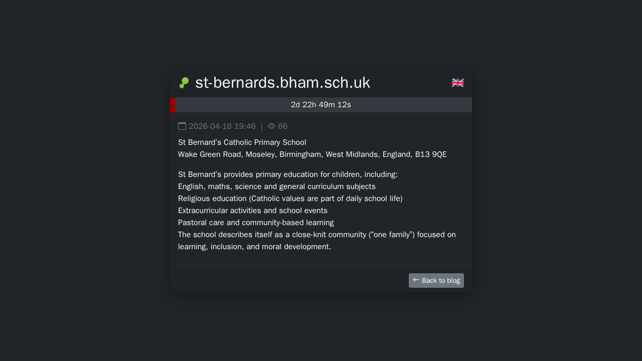 St Bernard’s provides primary education for children, including: English, maths, science and general curriculum subjects Religious education (Catholic values are …
