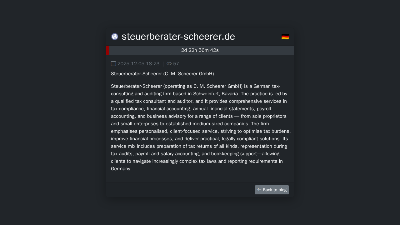 Steuerberater-Scheerer (operating as C. M. Scheerer GmbH) is a German tax-consulting and auditing firm based in Schweinfurt, Bavaria. The practice …