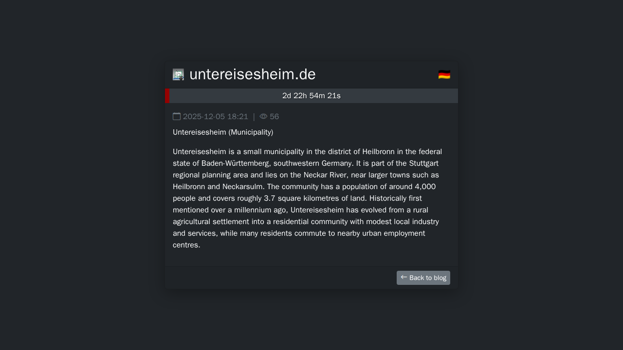 Untereisesheim is a small municipality in the district of Heilbronn in the federal state of Baden-Württemberg, southwestern Germany. It is …