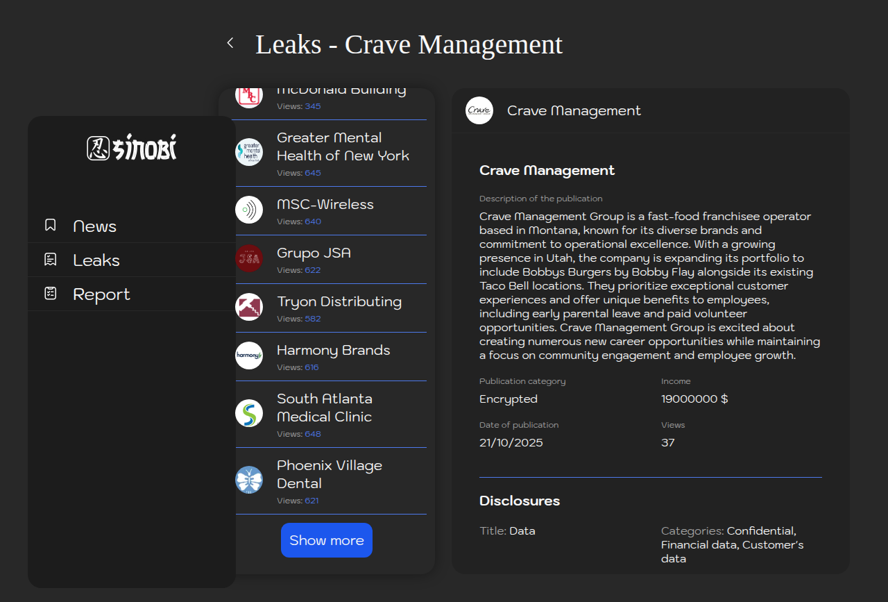 | Crave Management | Crave Management Group is a fast-food franchisee operator based in Montana, know... | Screen | |