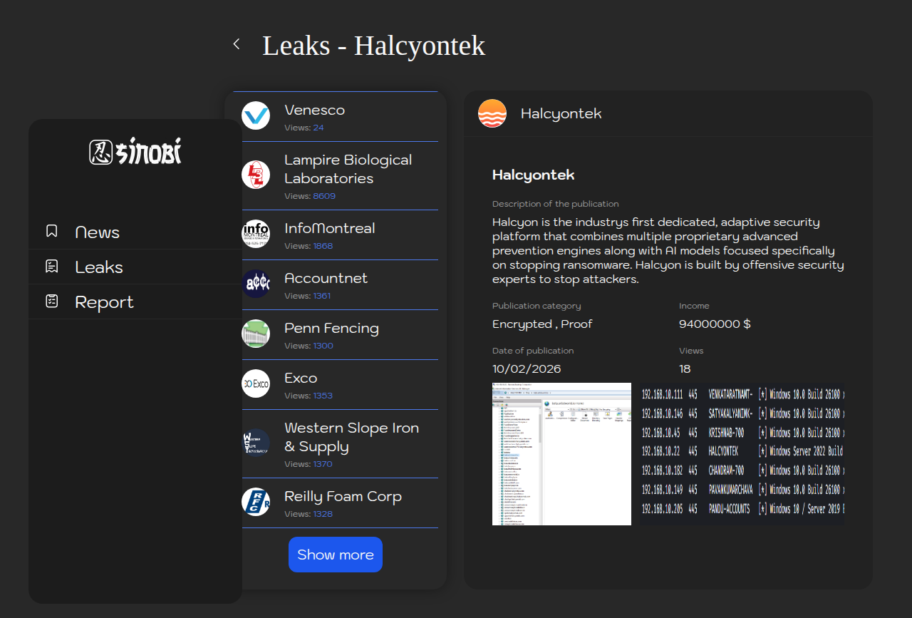 | Halcyontek | Halcyon is the industrys first dedicated, adaptive security platform that combin... | Screen | |