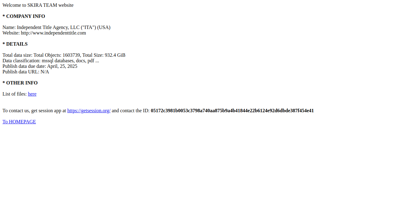 Independent Title Agency, LLC ("ITA") (USA)